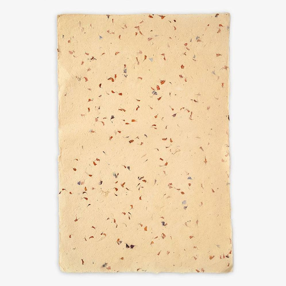 This stunning Lokta fine paper features colorful pressed flowers within the paper. The renewable Lokta plant’s long fibers are remarkably strong. giving Lokta paper its durability. supple feel and beautiful aesthetic. These qualities make this lovely fine paper suitable for bookbinding. gift wrapping. or card making. And because the Lokta plant is renewable. these handmade papers are truly a green choice.