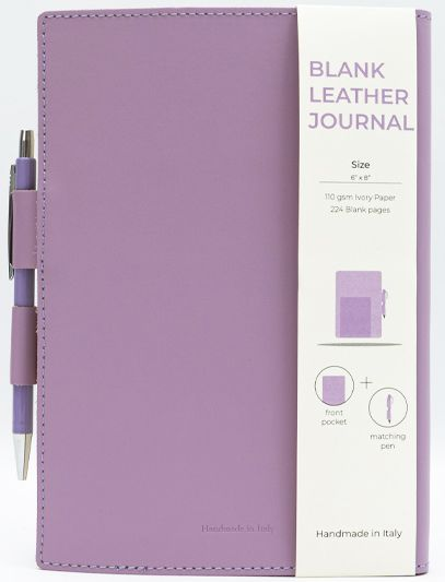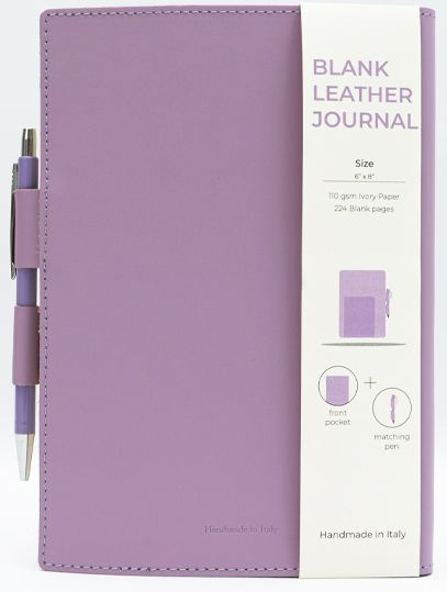 Smooth Italian genuine leather purple journal with a button closure. The 110 gram ivory blank pages are FSC certified recycled. Handmade in Florence. Italy.