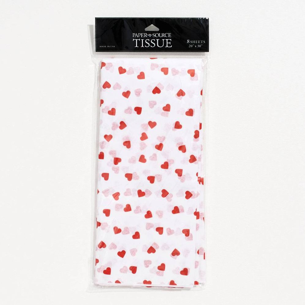 This heart tissue paper pack contains eight 20 x 30 sheets.