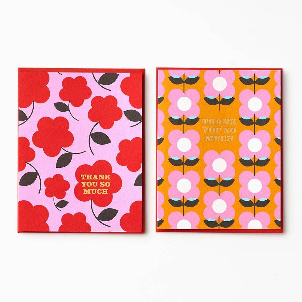 Send these fun and retro flowers to say thank you! This assorted set features two colorful designs with gold foil lettering that reads. Thank you so much!