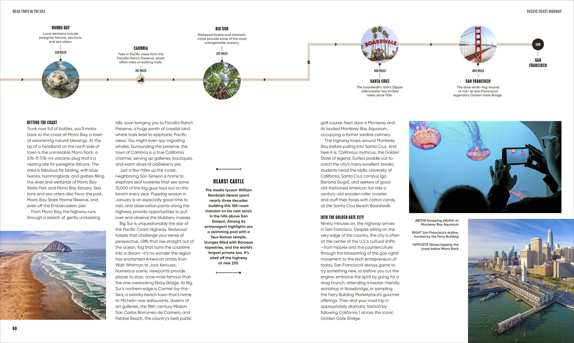 - Inspirational maps pinpointing all the key stops to make en route. such as classic landmarks and historic restaurants