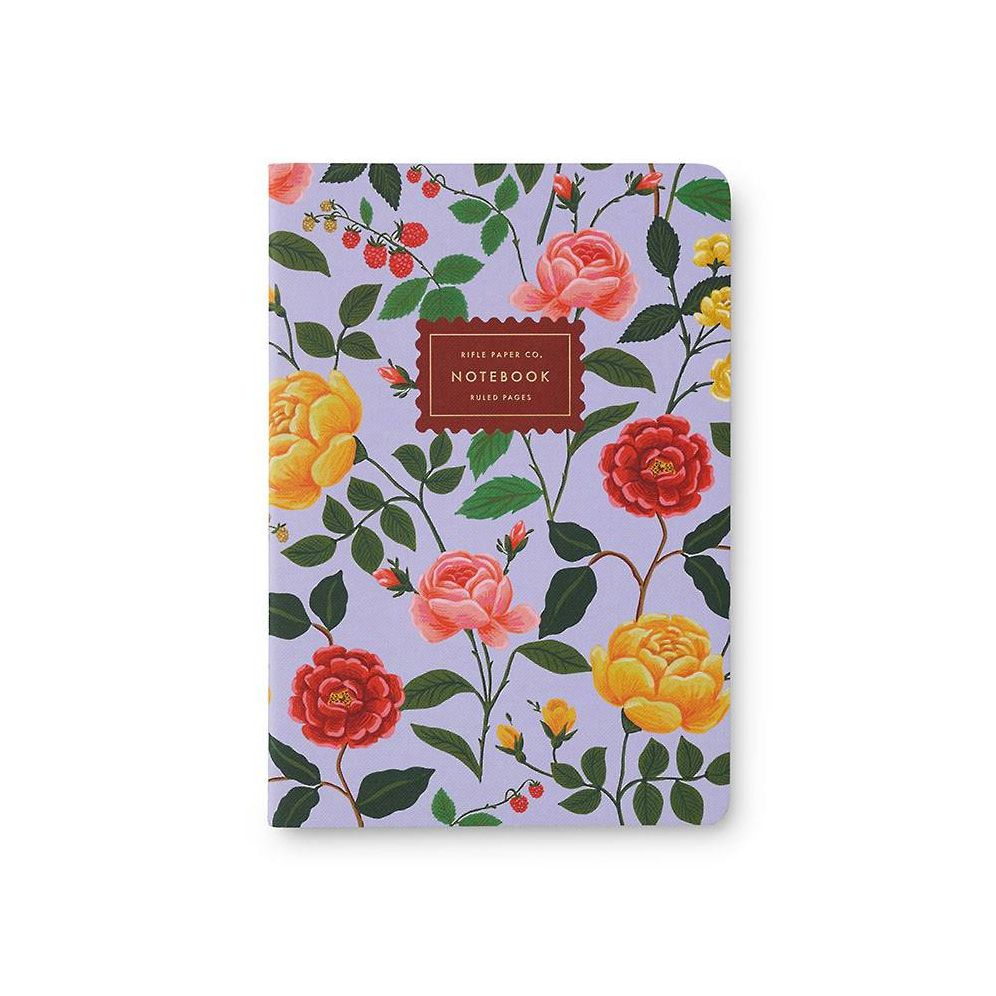 Good things come in threes. and Rifle Paper Co. Stitched Notebook Sets are no exception. Each bundle features three notebooks with full-color rose-printed covers. stitched binding. gold foil accents. and 64 ruled pages.