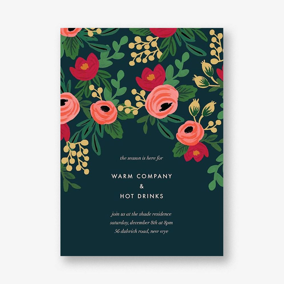 Vibrant florals frame your party details on this Rosy Cheeked customizable invitation from the designers at Rifle Paper Co. for Paperless Post Be sure to check out photo options for the back of this card!