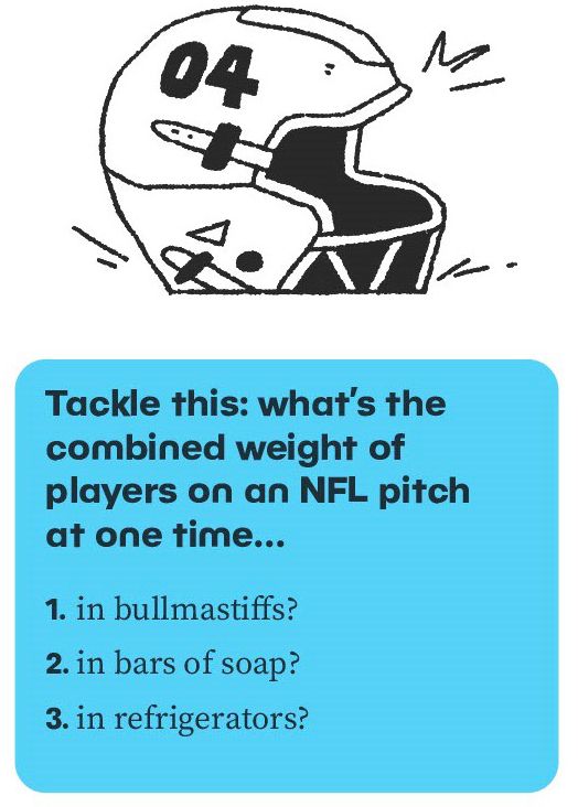 HILARIOUS QUESTIONS Ridiculous comparisons get everyone laughing as they try to. roughly. guesstimate the answer.