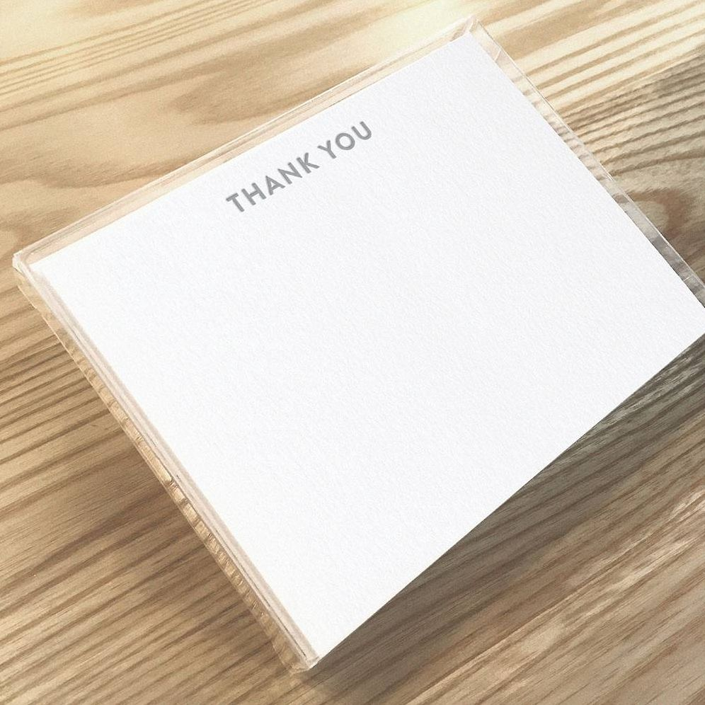 This simple letterpress printed flat thank you note card set is the perfect way to show how grateful you are for them! Includes 12 notecards with matching envelopes. Designed and printed by Huckleberry Letterpress.