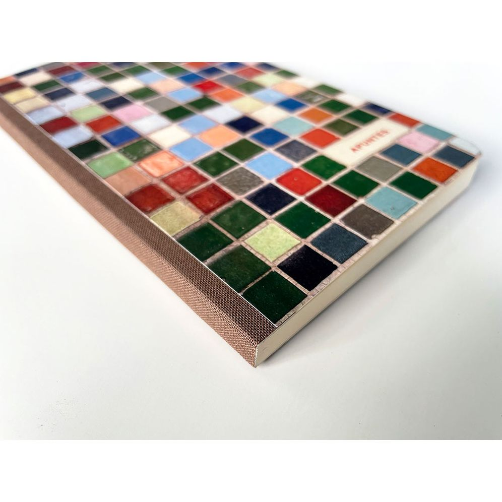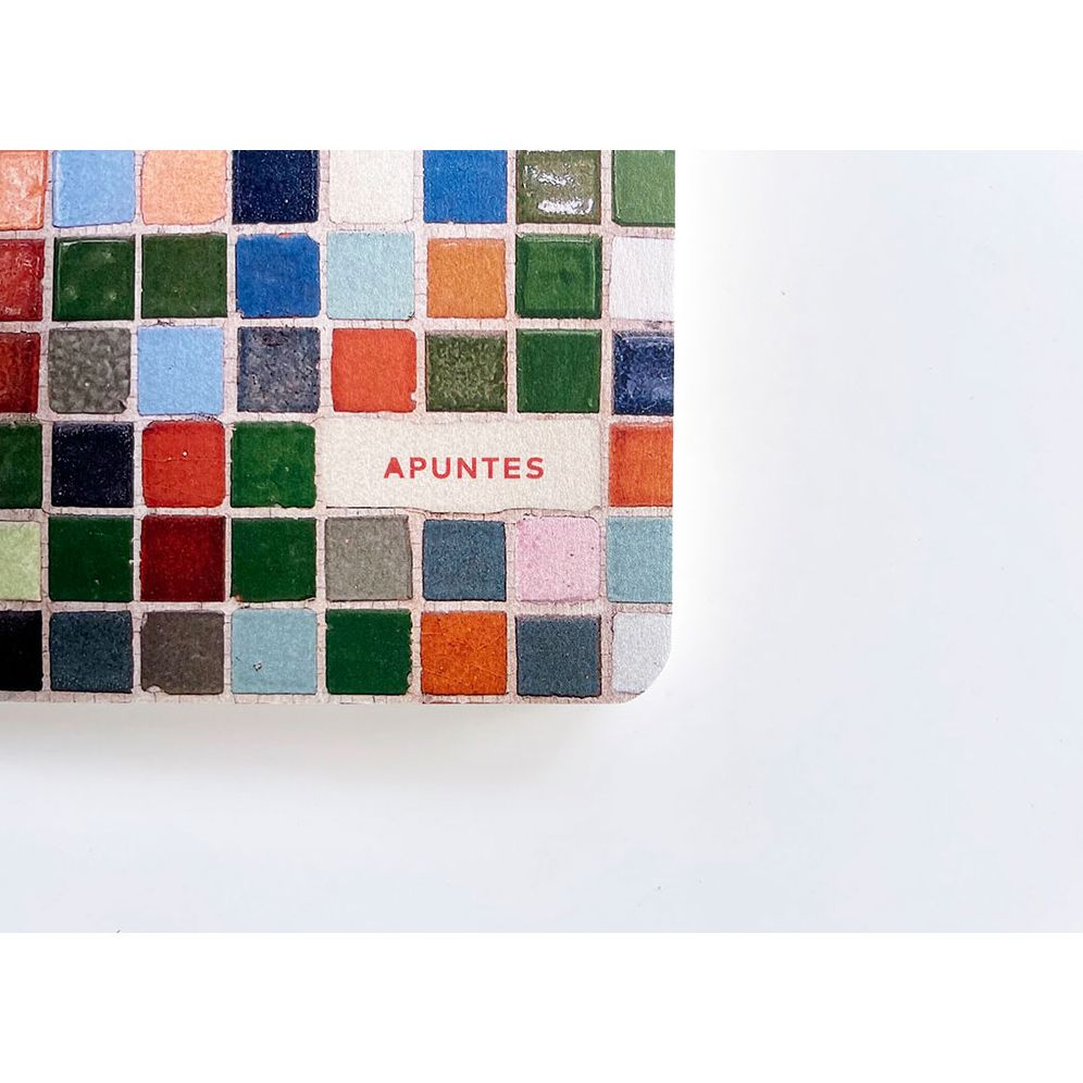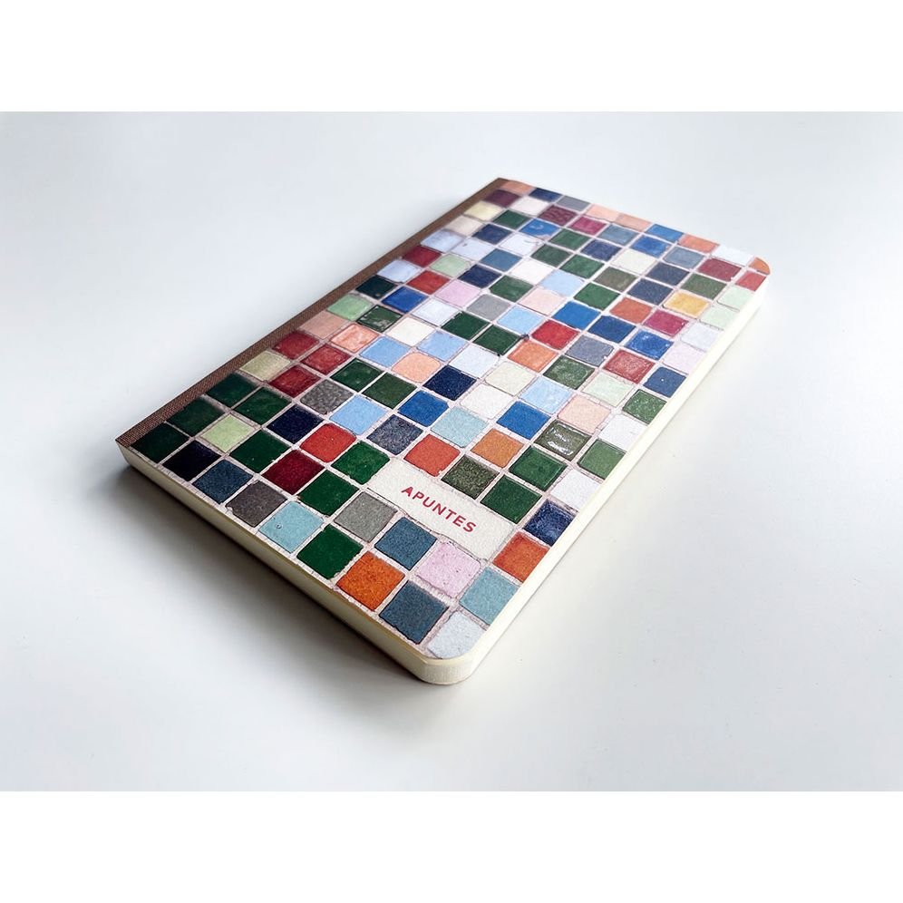 A soft cover yet resilient notebook that opens flat—ideal for those who enjoy squeezing their notebooks while writing. The cover of this notebook features a vibrant oasis of color. inspired by a fragment of mosaic tiles from a house in the Narvarte neighborhood of Mexico City.
