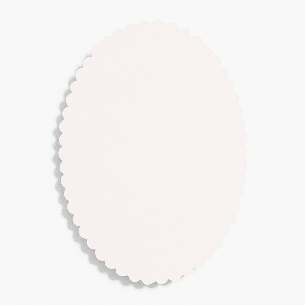 Our charming scallop oval cards add pizzazz to thank yous and birth announcements. In a very. very light cream. Perfect for wedding invitations. birth announcements. and keen layered designs. Cover weight. Fits a 4 Bar envelope.