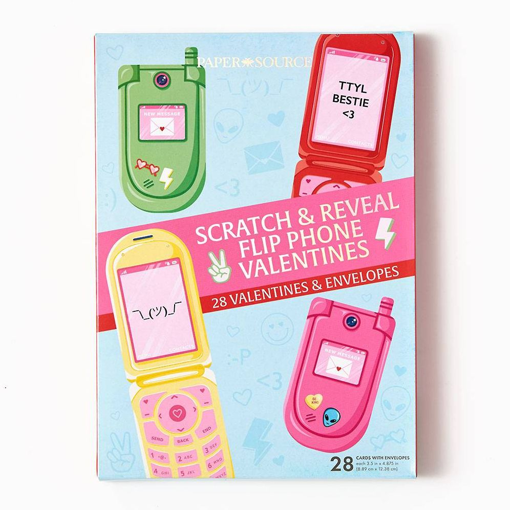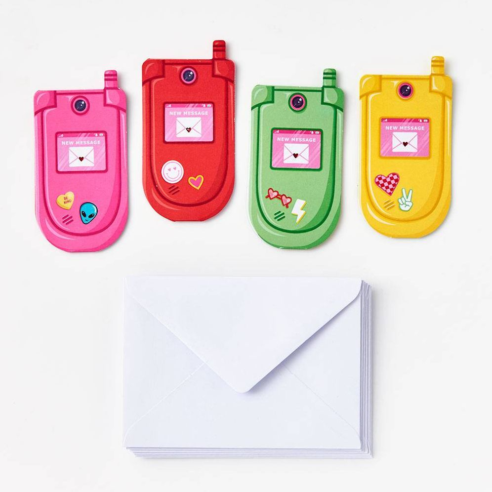 Step into nostalgia with this adorable flip phone Valentine’s Day stationery set of 28! Perfect for kids parties & school events! Comes with white envelopes. Cards are 3.5 x 4. Designed by Paper Source.