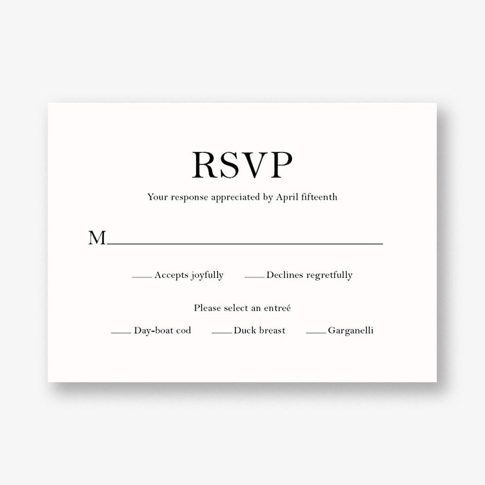 This response card features an illustration of trees. Add your wedding details and invite all your loved ones to celebrate with you and your partner-to-be. Printed on Mohawk superfine white 100 lb. card stock that is soft to the touch and matches our superfine white envelopes. Paper is FSC certified and made using wind power.