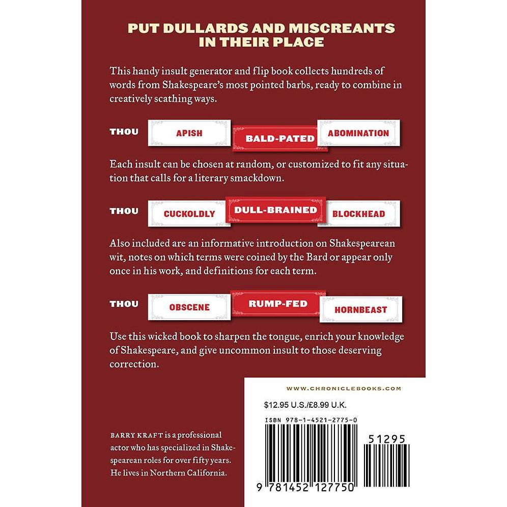 Put dullards and miscreants in their place with more than 150.000 handy mix-and-match insults in the bard’s own words. This entertaining insult generator and flip book collects hundreds of words from Shakespeare’s most pointed barbs and allows readers to combine them in creative and hilariously stinging ways. From apish bald-pated abomination to cuckoldly dull-brained blockhead to obscene rump-fed hornbeast. each insult can be chosen at random or customized to fit any situation that calls for a literary smackdown. Featuring an informative introduction on Shakespearean wit. and notes on which terms were coined or only used once by the author in his work. this delightful book will sharpen the tongue of Shakespeare fans and insult aficionados without much further ado.