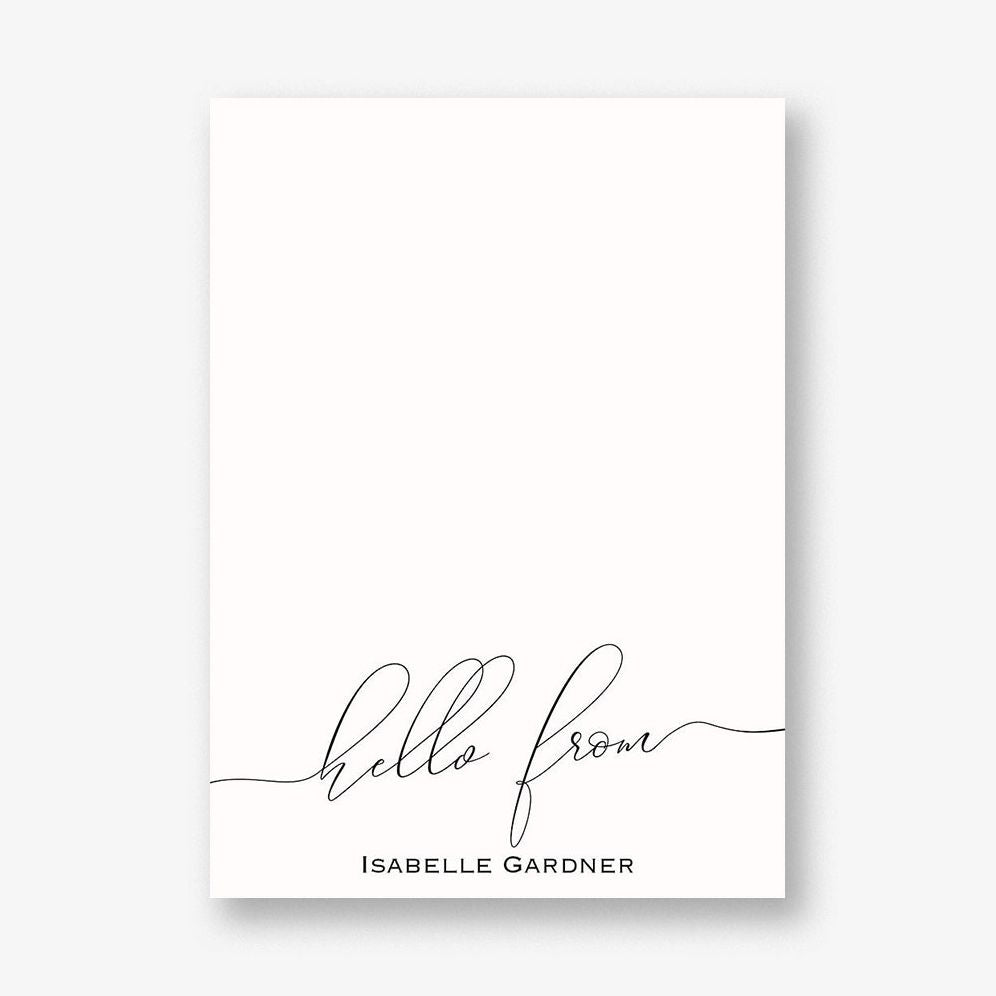 Greet recipients of this stationery with a warm hello in a stunning script on this. the Signature Hello From Stationery. designed right here at Paper Source. Printed on Mohawk superfine white 130 lb. card stock that is soft to the touch and matches our superfine white envelopes. Paper is FSC certified and made using wind power.