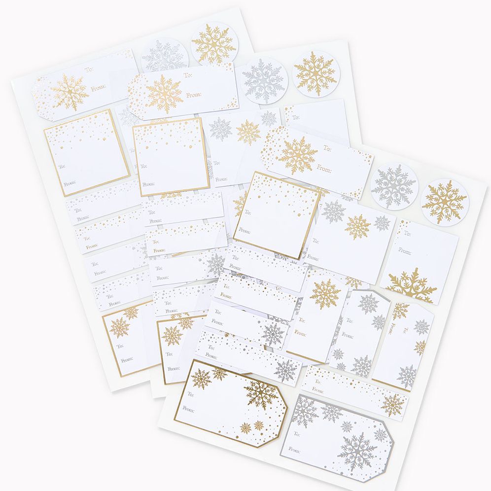 No gift is complete without a gift tag! Add a polished finishing touch to every present with these elegant snowflake gift labels. Designed in silver and gold with plenty of space to write. these peel-and-stick labels make it easy to mark gifts with style and sparkle all holiday season. Our Paper Source exclusive snowflake tags come with 3 sheets of beautiful silver and gold decorative tags. The adhesive backing allows you to place your label directly onto wrapped packages. gift bags. or gift tags. Set of 48 adhesive gift tag labels.