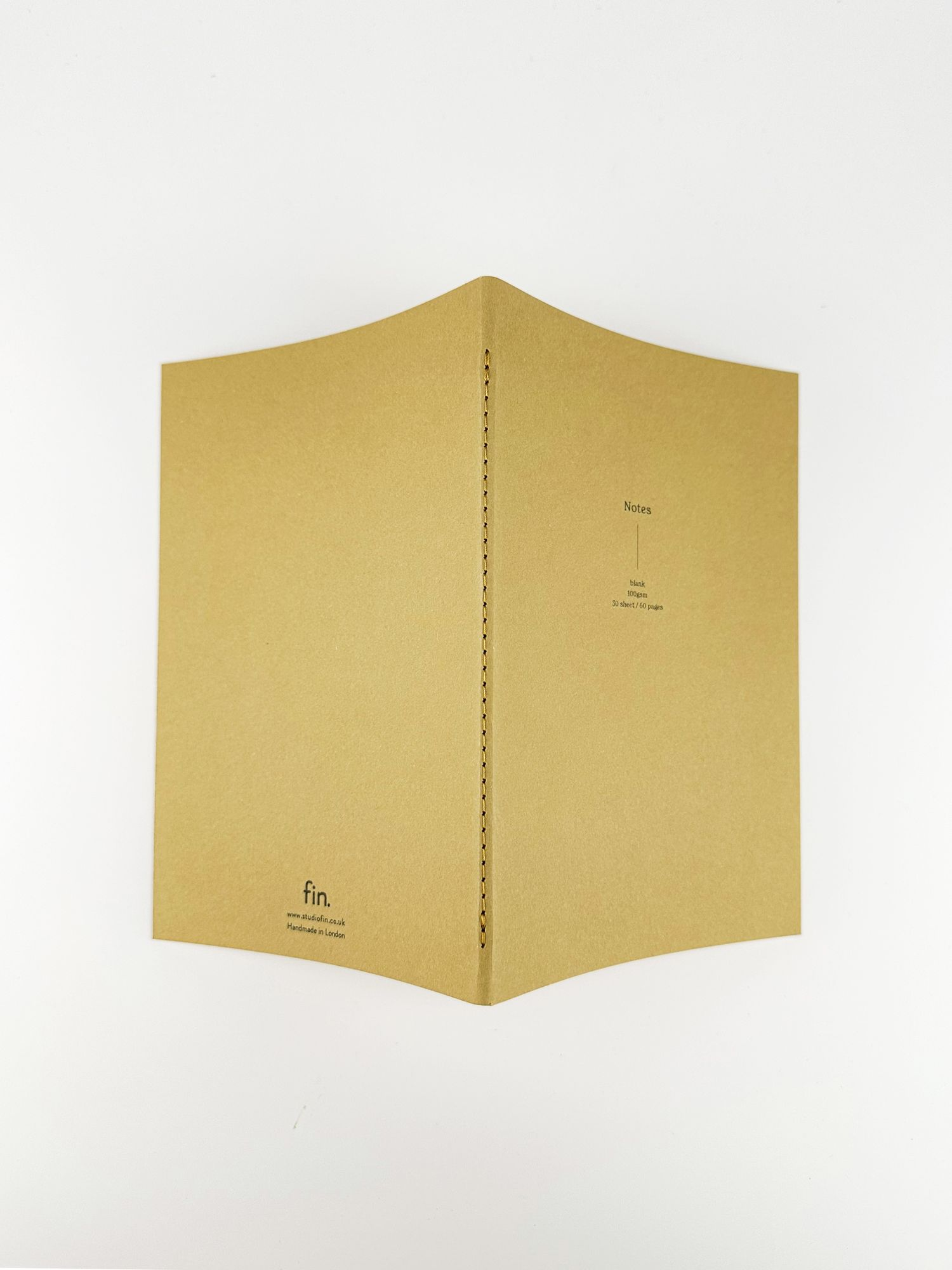 Vita Series Handmade Notebook! Designed and made by Fin Studio / Available in A5 / 60 pages – Blank FSC certified 100gsm acid free paper & color is ivory / Materica Verdigris 250 gsm cover / Single sewn / Comes with compostable-biodegradable film bag