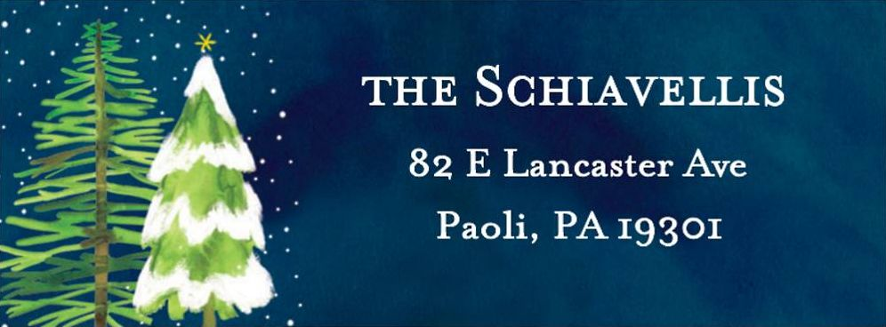 It’s a winter wonderland of snowy pine trees complete with twinkling stars on these return address labels.