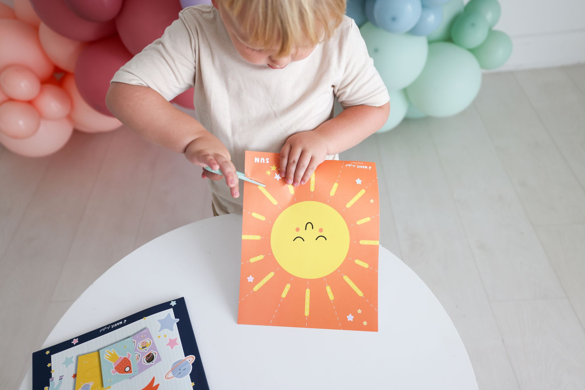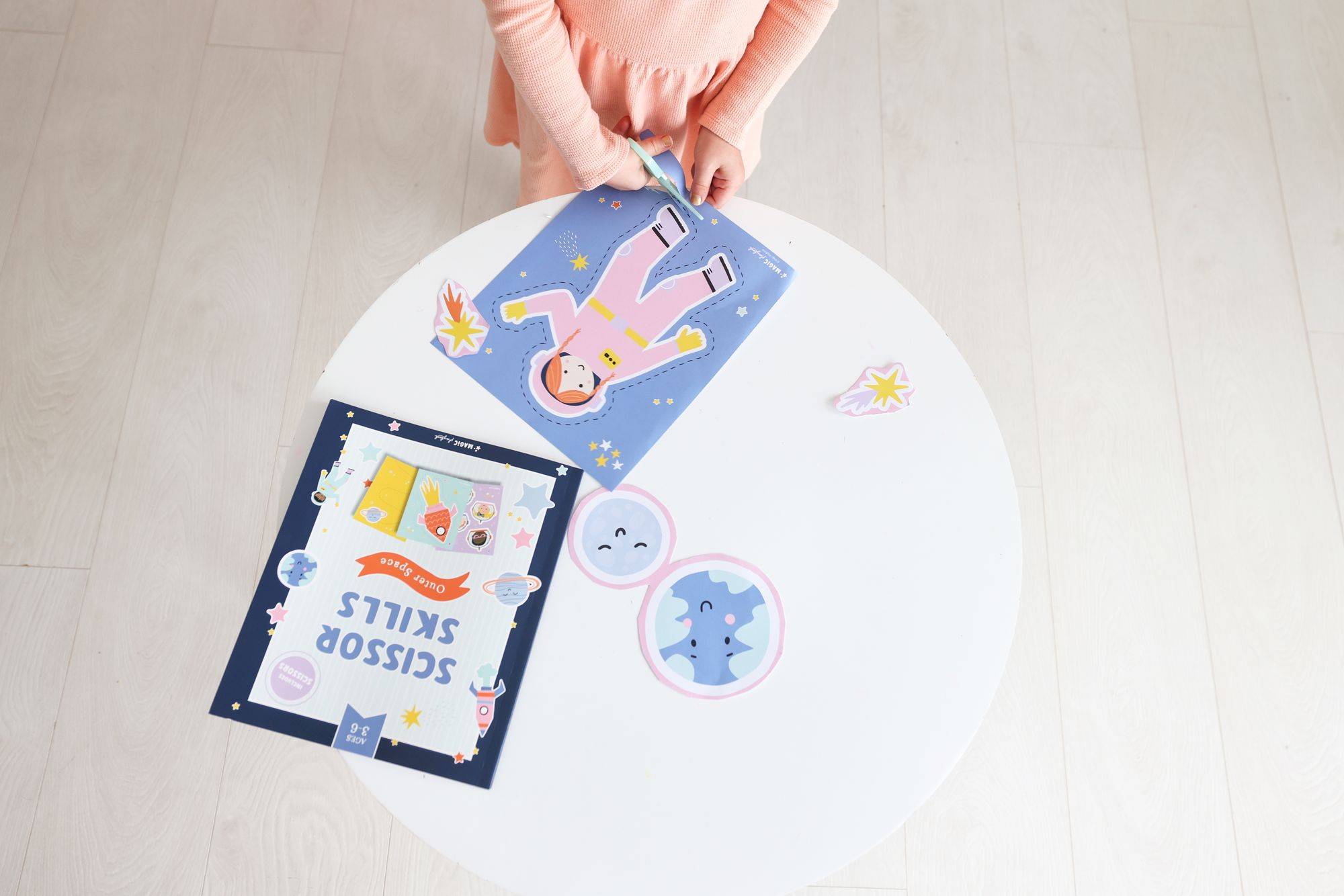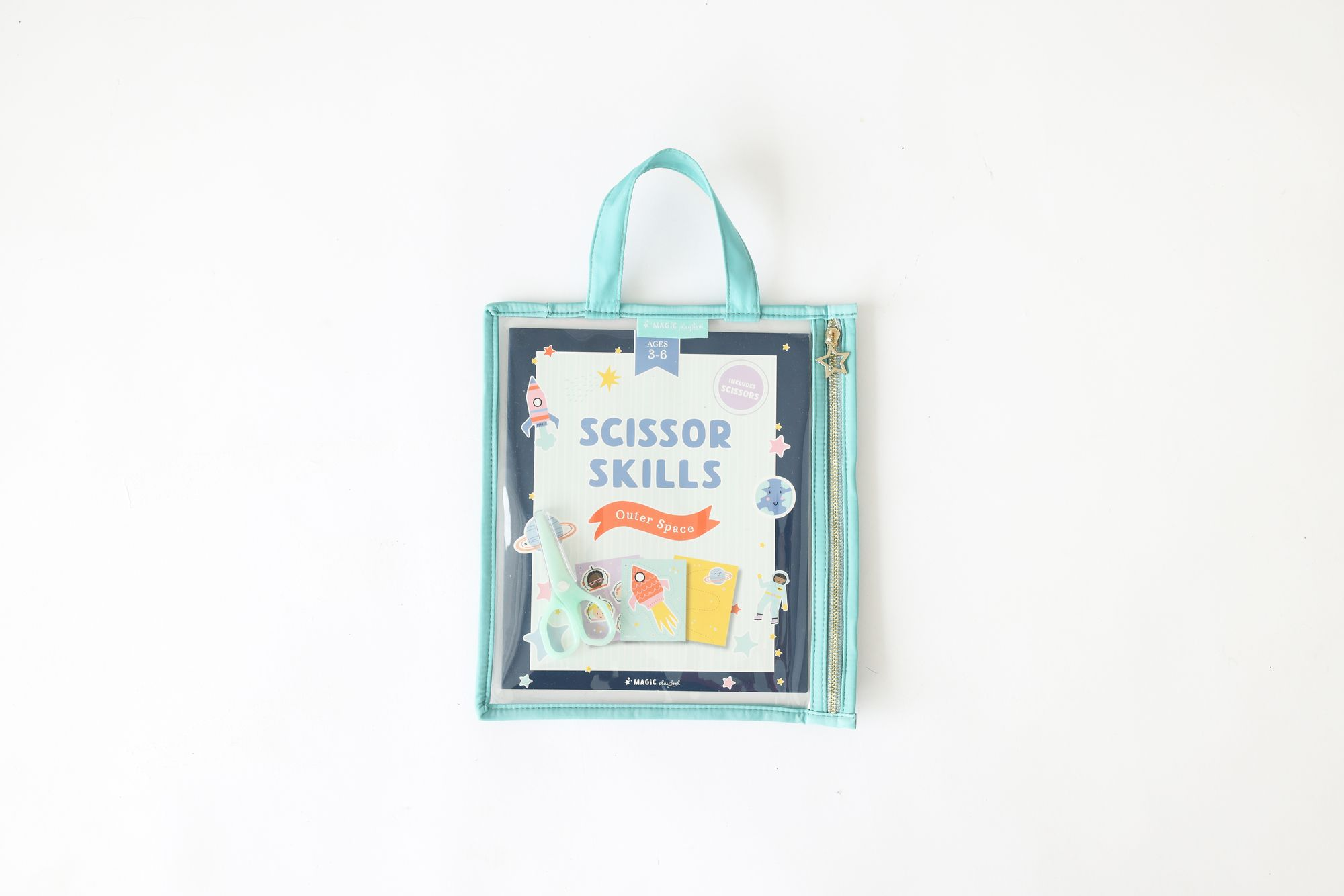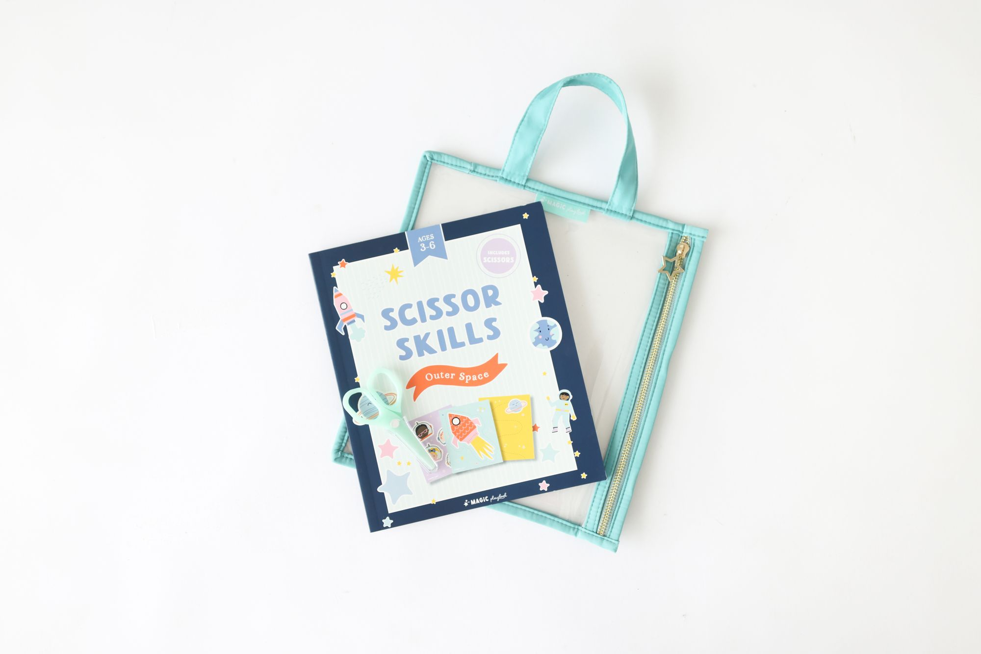 Introducing the Space Scissor Skills Kids On-the-Go Activity Kit! Packed with 25 colorful perforated pages and kid-friendly scissors. this kit is a perfect way to foster creativity and fine motor skills. All neatly organized in a reusable zippered pouch with a convenient handle. it’s the ideal companion for young astronauts and budding artists on the move. Let their imaginations soar with this stellar scissor skills kit!