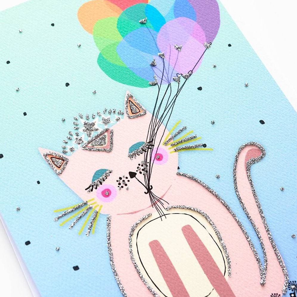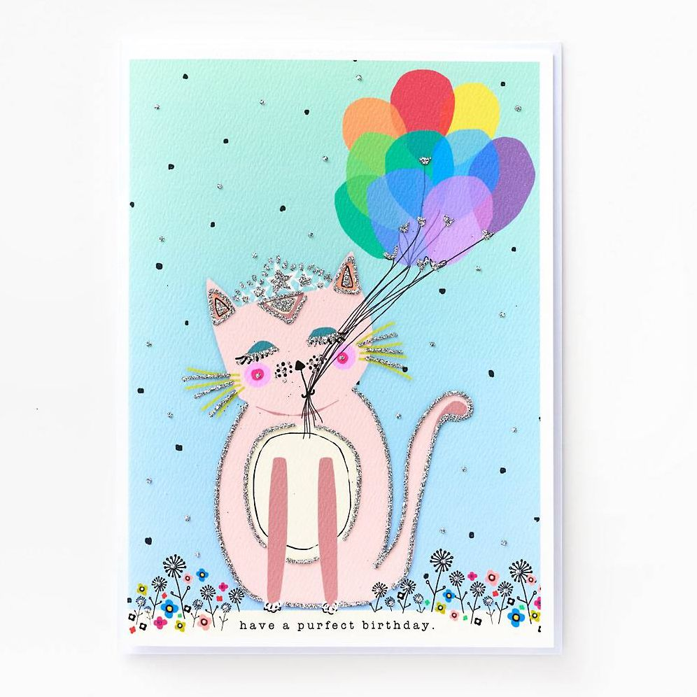 Glitter and cats are the purfect combo for a birthday card! Features adorable cat with gold glitter and painted details.