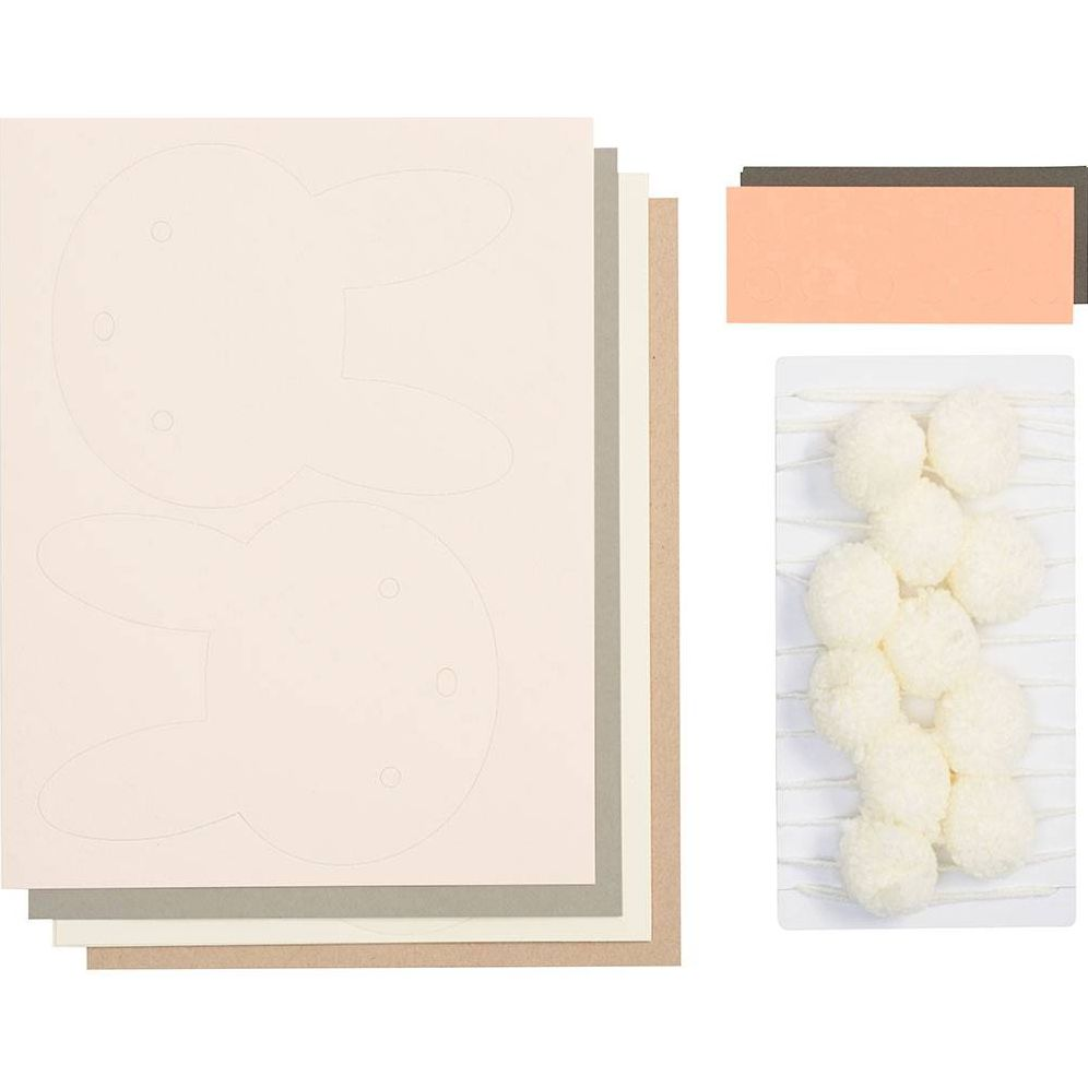 Kit Includes: pre-cut shapes • yarn pre-strung with poms