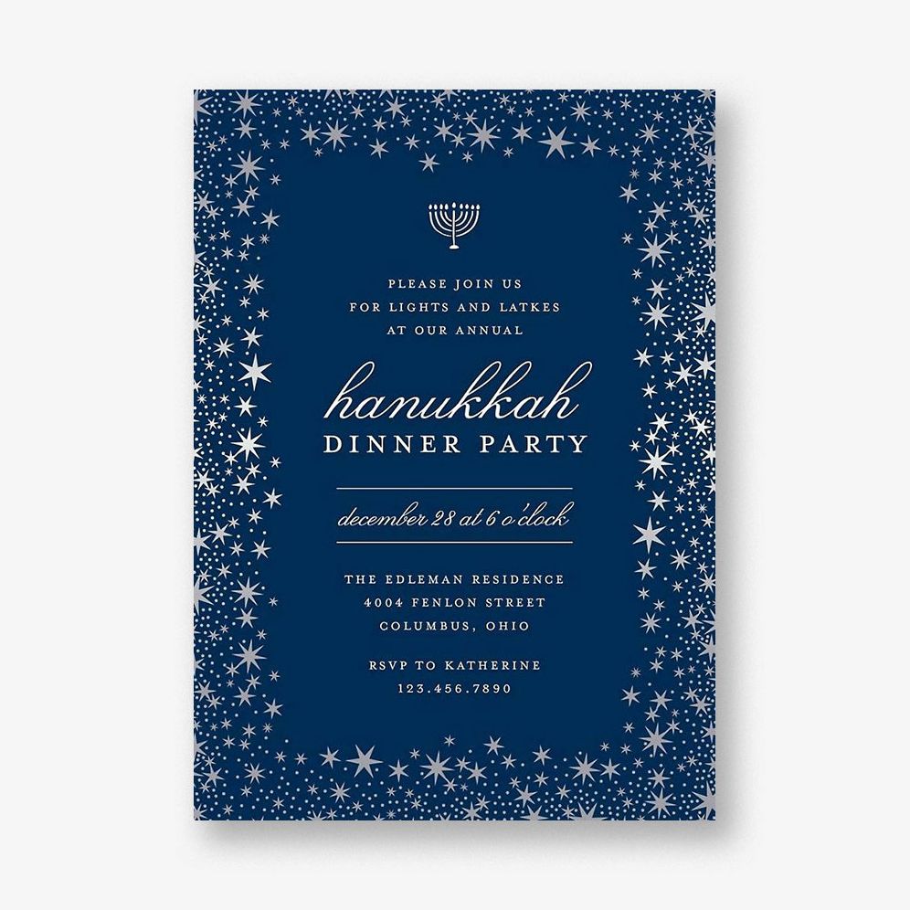 Starry Night Foil Border Hanukkah Card