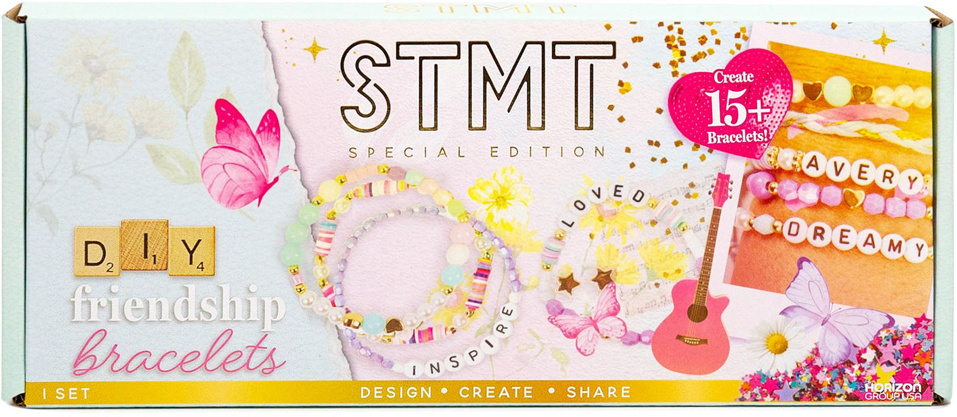 Prepare to fall in love with bracelet-making and design the perfect stack with the STMT D.I.Y. Flower Friendship Bracelets set! Packed with over 300 beads in a vibrant variety of colors. types. and styles. plus elastic cording and friendship thread. you can create over 15 custom accessories to stack and share with friends. Learn trendy techniques like perfect harmony friendship bracelets and pastel diagonals. or braid and bead your way to beautiful bracelets. This kit is perfect for all skill levels and anyone who loves a good bracelet stack!