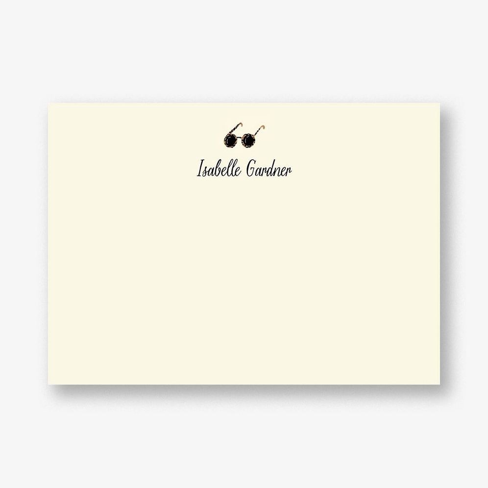 Stylish sunglasses top the Sunglasses Stationery personalizable with your name. designed right here at Paper Source. Printed on Mohawk superfine soft white 130 lb. card stock that is soft to the touch and matches our superfine soft white envelopes. Paper is FSC certified and made using wind power.