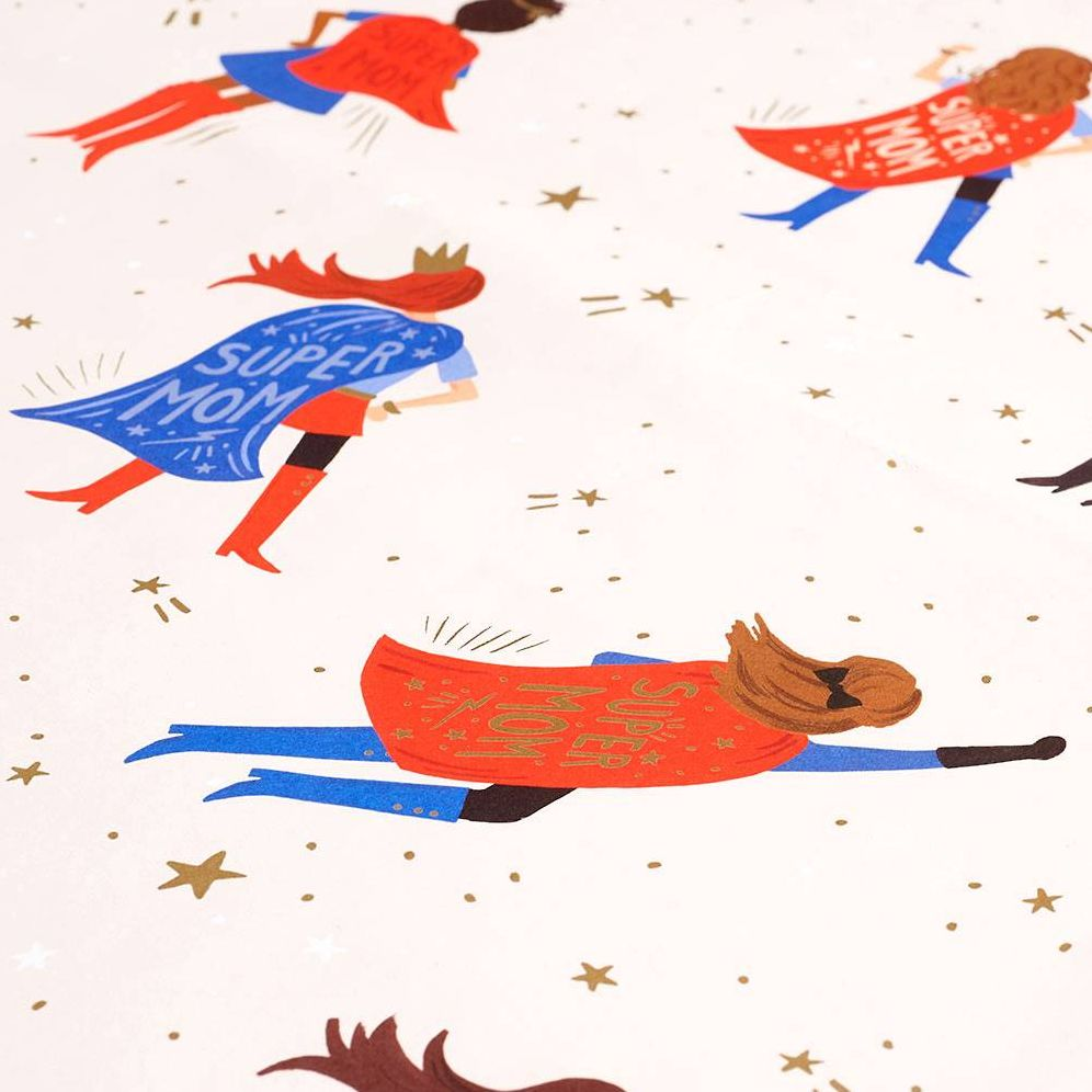 Super Mom is a hero every day of the week! Show the #1 lady in your life just how important she is and all the things she makes possible with this Super Mom wrapping paper by Rifle Paper Co.