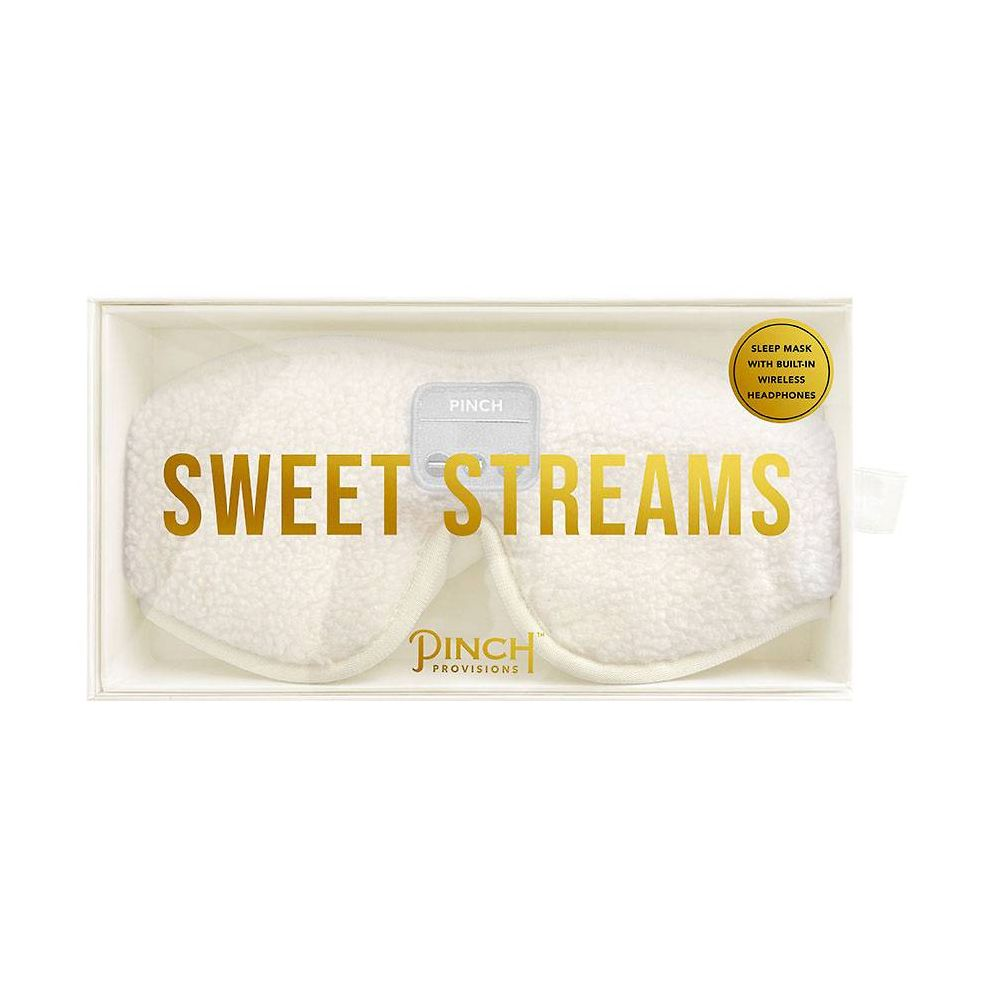 Stop counting sheep and stream yourself to sleep. Slip on our Sweet Streams Sherpa Sleep Mask with Built-In Wireless Headphones. and doze off to the sound of your favorite music. audiobooks. meditations. podcasts. and more.