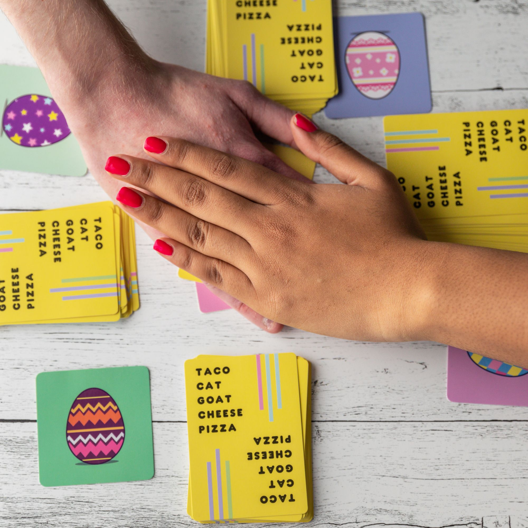 An addictive game is as unique as its name. It’s a quick simple party game. Race against each other to SLAP a match between a card and spoken word. But – watch out! Your mind will play tricks on you. This game was engineered for maximum fun. Enjoy!