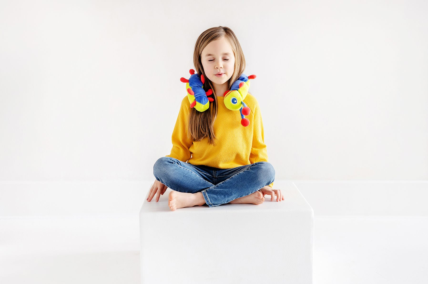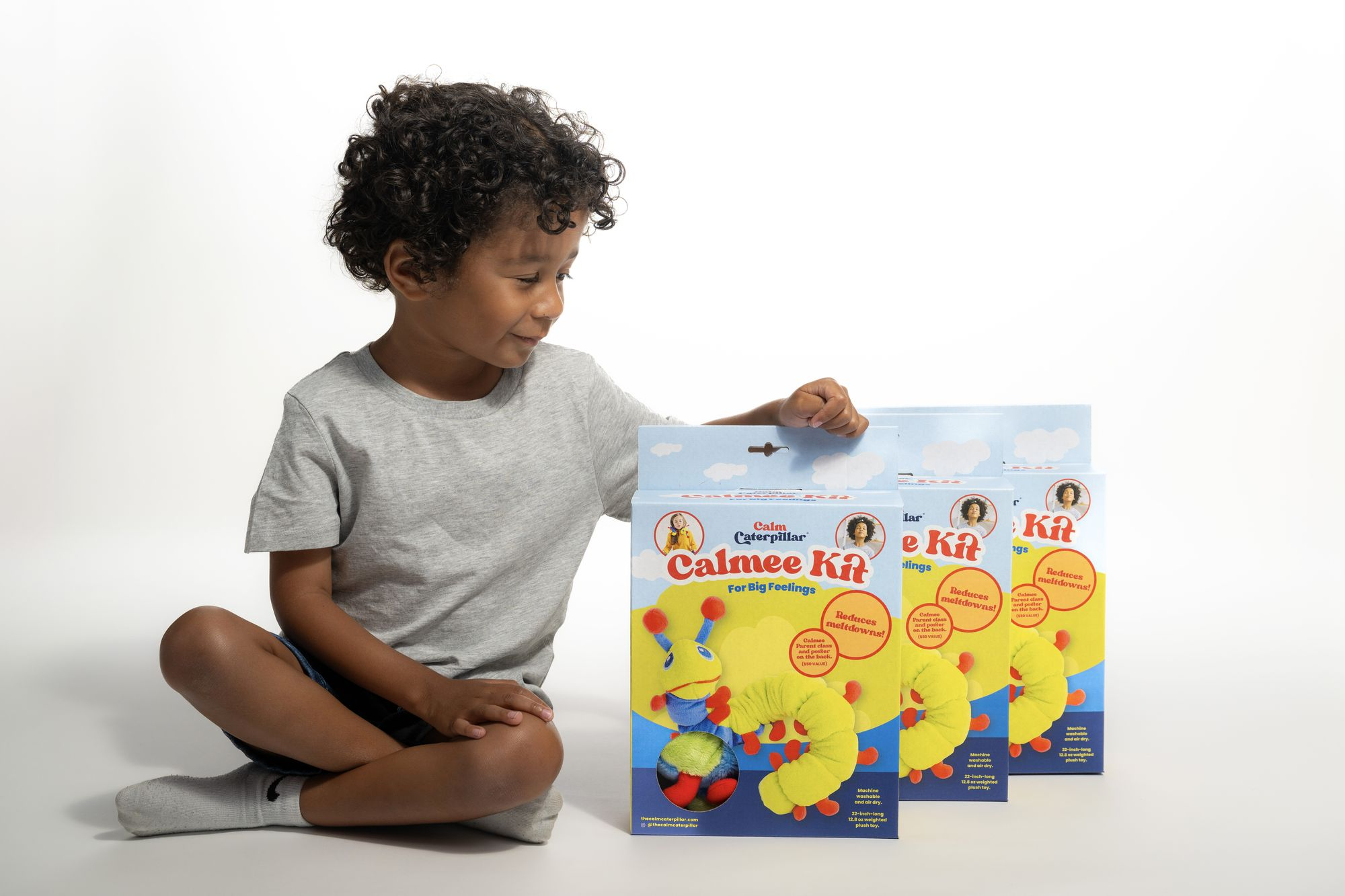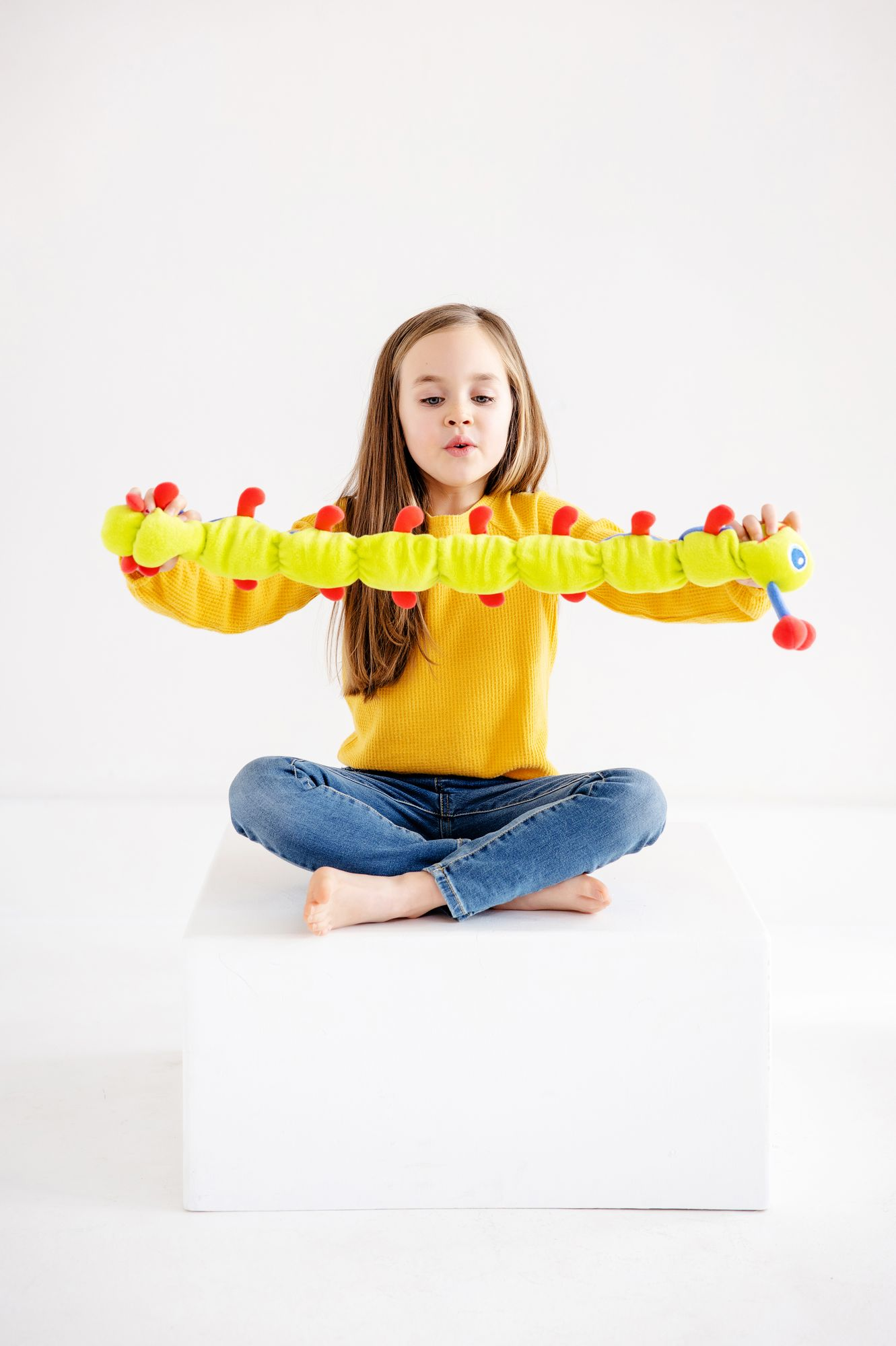 Calmee the Caterpillar is a soft plush toy. designed to help teach children how to regulate their emotions through sensory input and deep breathing! The Calmee Kit includes a Hand Breathing activity and access to an 18-minute online parenting course!