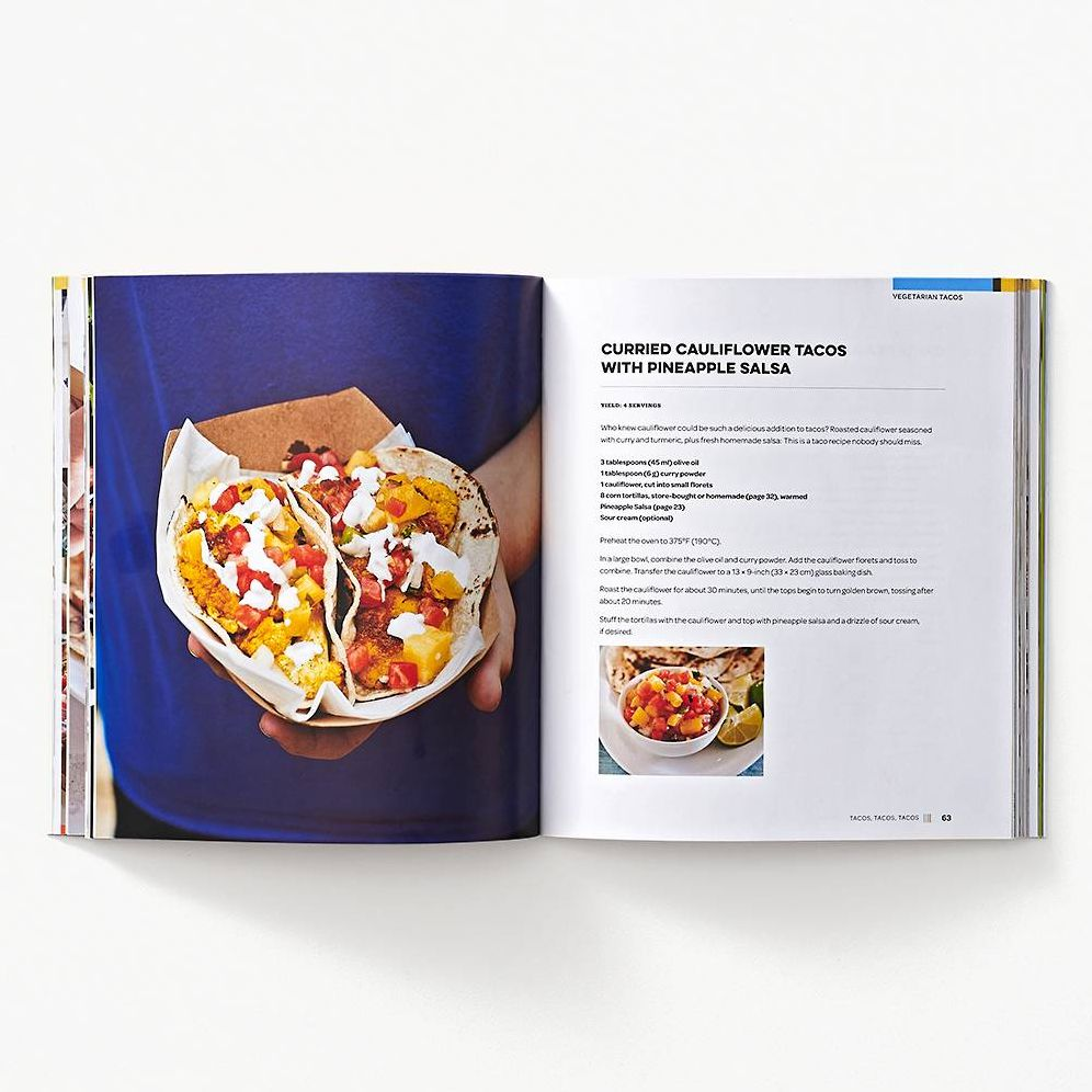Inside. you’ll find recipes for chicken. beef. vegetarian. seafood. pork. and breakfast tacos. plus tortilla. salsa. and drink recipes to make your taco night complete. There are also vegetarian. gluten?free. and paleo options throughout. so you’ll be able to fully customize recipes based on your family’s needs.