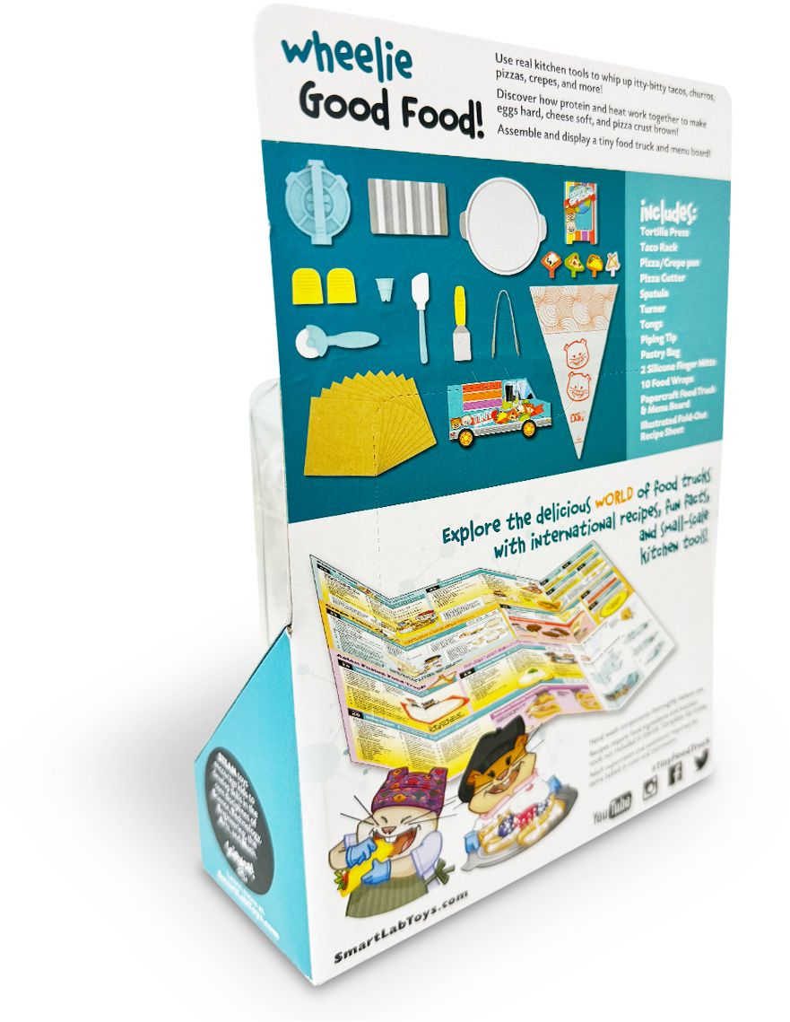 Explore the delicious world of food trucks with international recipes. fun facts. and small-scale kitchen tools! Budding chefs can use real kitchen tools to whip up itty-bitty tacos. churros. pizzas. crepes. and more. They’ll discover how protein and heat work together to make eggs hard. cheese soft. and pizza crust brown. Kids can also assemble and display a tiny food truck and menu board!