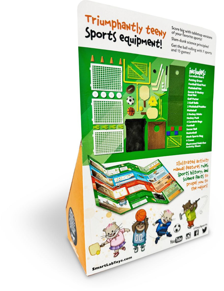 This hard-hitting kit contains miniature versions of seven popular sports that you can play alone or with friends. Sports include tabletop basketball. American football. cornhole. ice hockey. pickleball. golf. and soccer. Game rules are customized for maximum fun when playing with the tiny sports equipment. As you learn the game rules. you are also encouraged to come up with creative ways to use the tiny sports equipment. Set up a mini mini-golf course! Dribble the soccer ball with your fingertips! See how many times you can bounce the basketball before you make a goal!