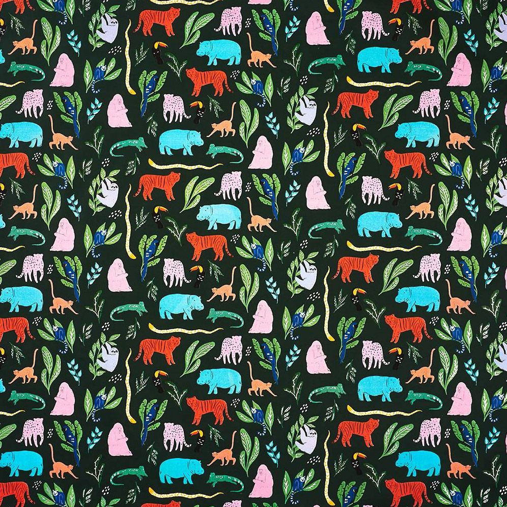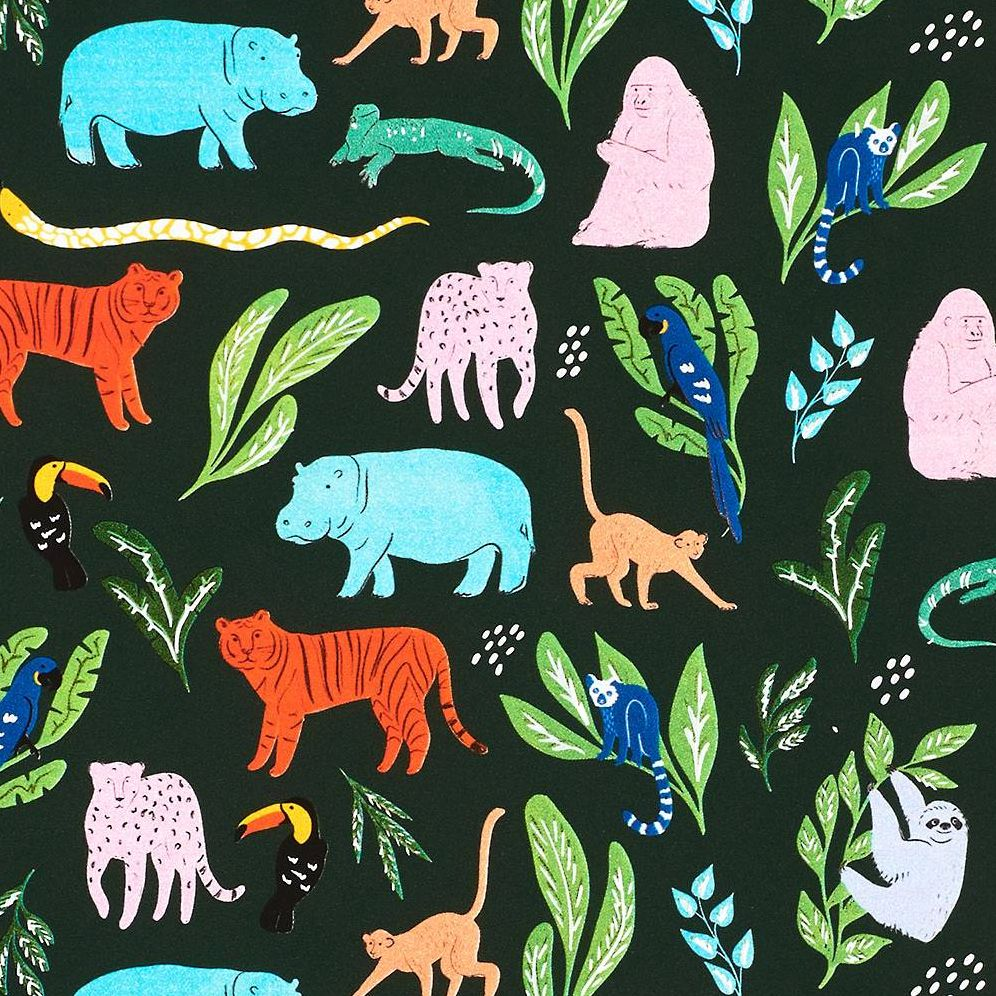 This adventurous and tropical animal-themed gift wrap is a menagerie of colorful creatures. This whimsical design is great for all of your gifting needs.
