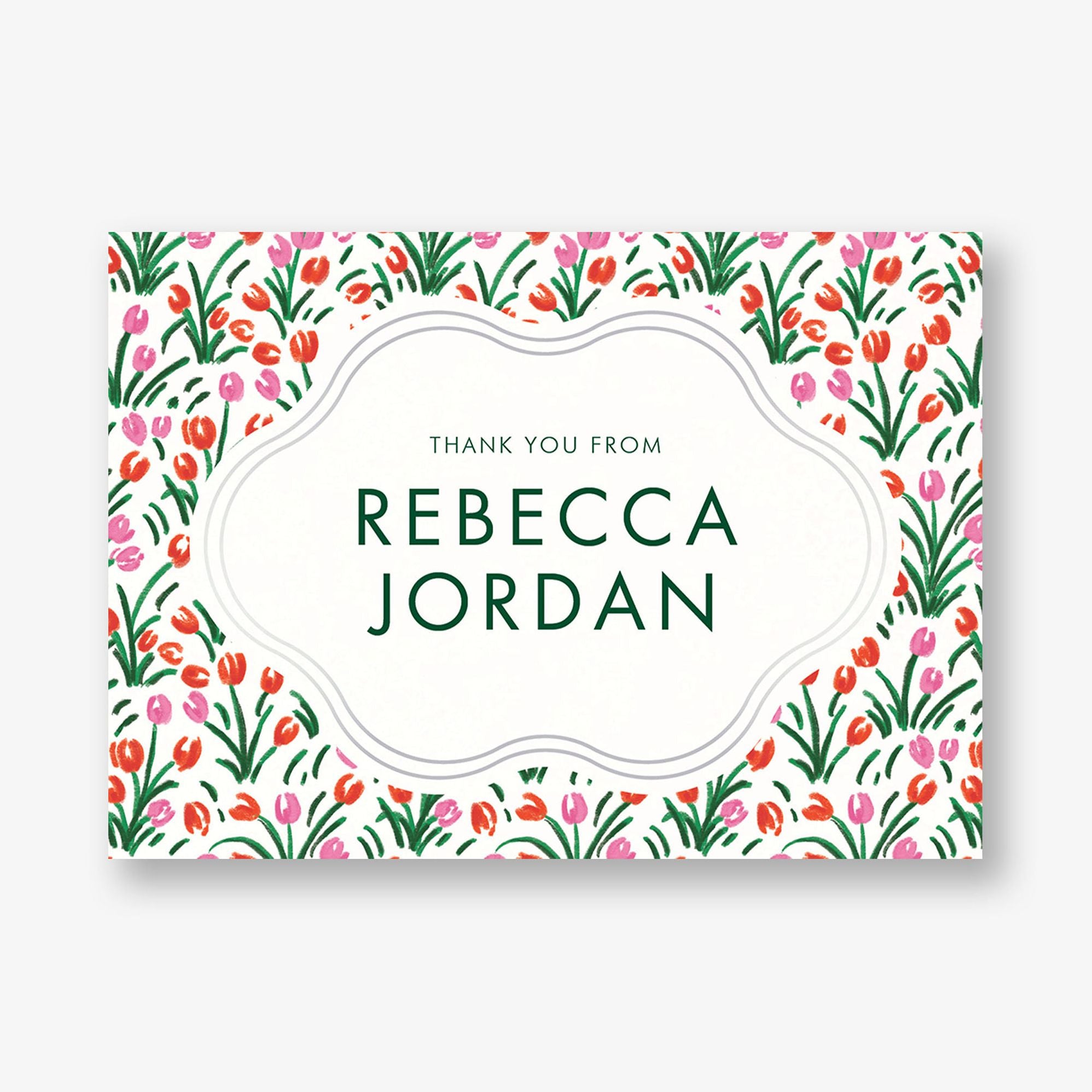 Printed on Mohawk superfine white 100 lb. card stock that is soft to the touch and matches our superfine white envelopes. This paper is FSC certified. with 30% post-consumer recycled content. and made using wind power.