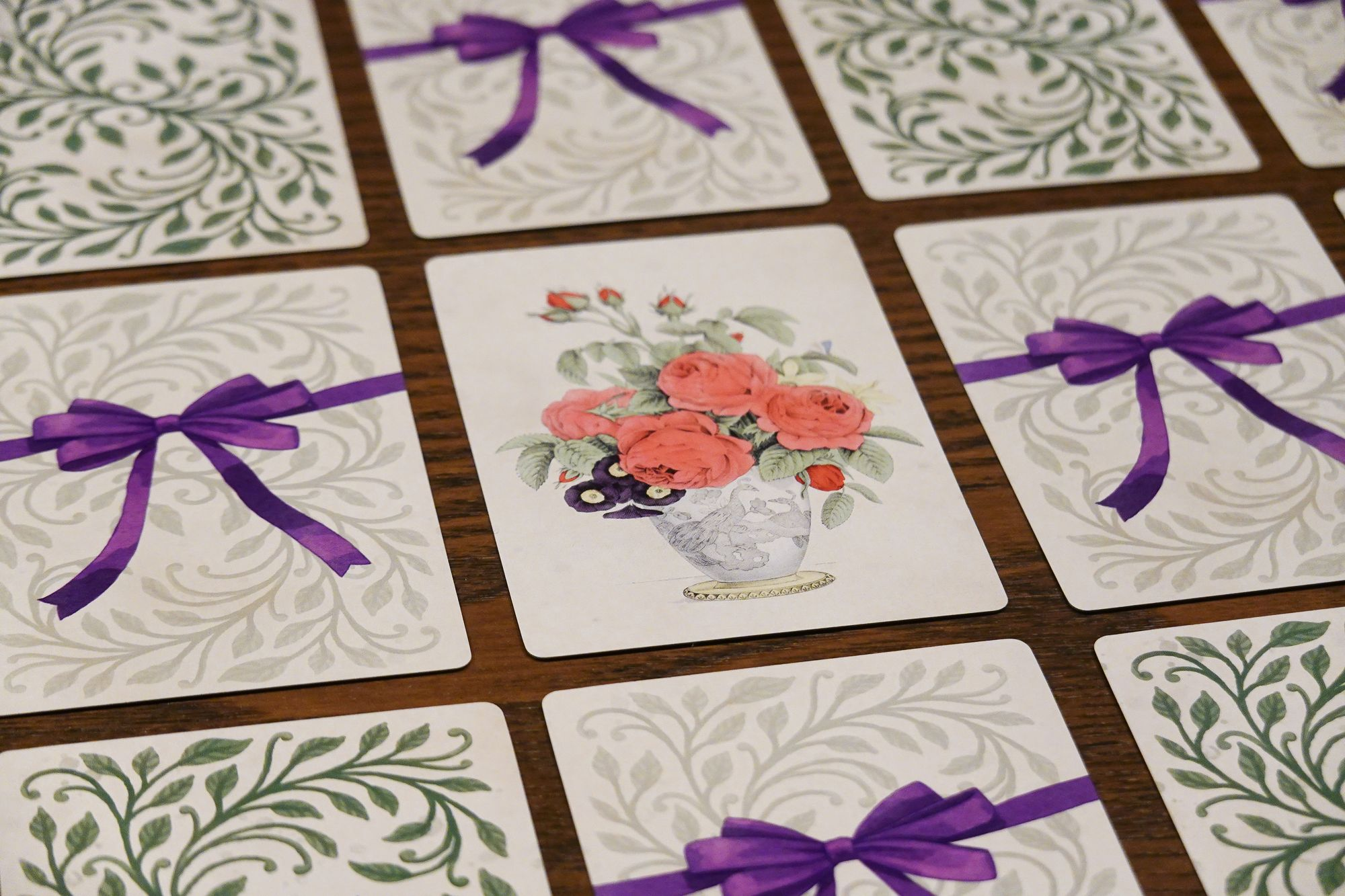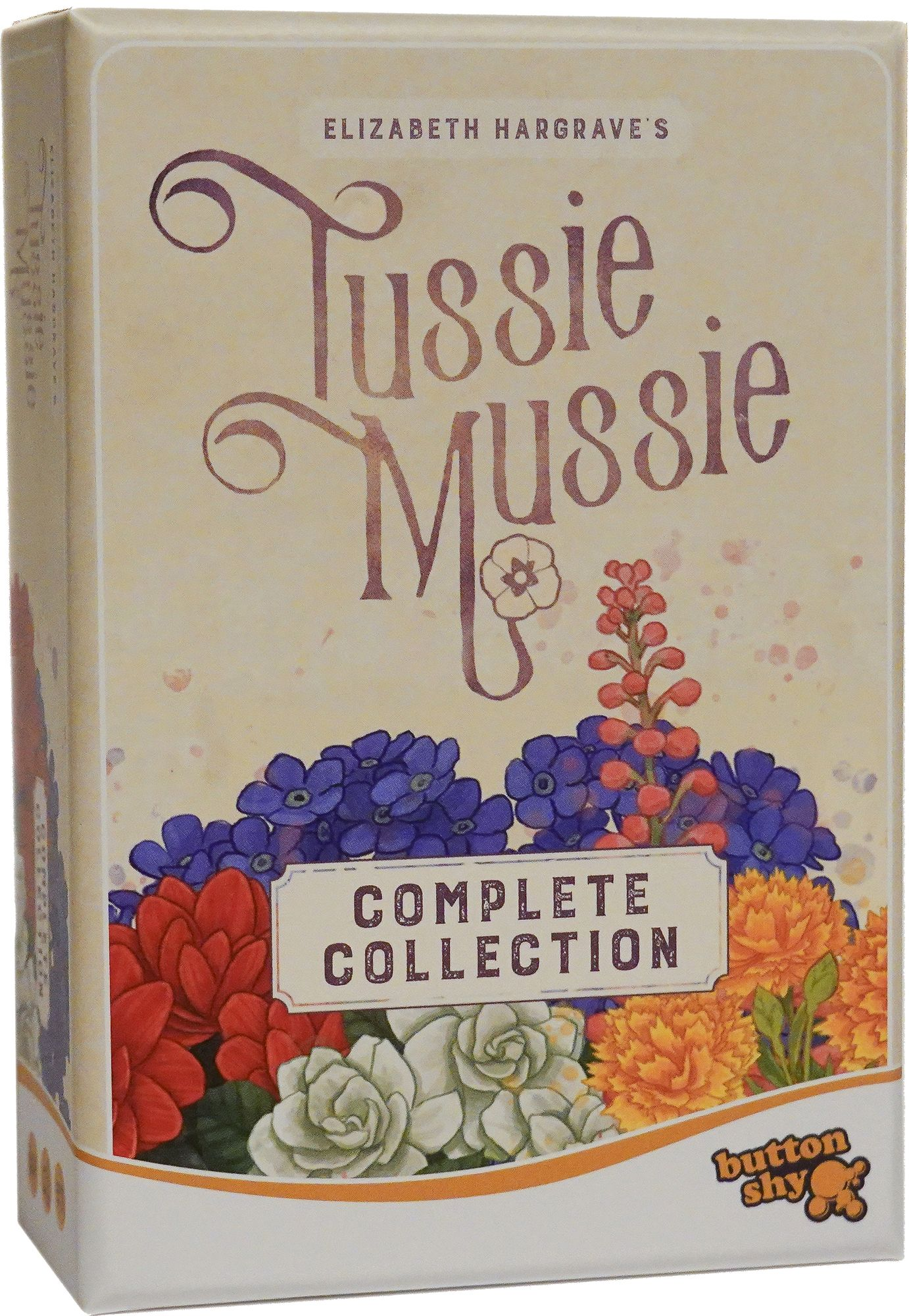 Tussie mussies came from the Victorian custom of assigning secret meanings to flowers exchanged by friends and lovers. These bouquets elegantly and discreetly conveyed subtle messages to their recipients. Choose the right flowers to make a winning tussie mussie of your own! Designed by Elizabeth Hargrave. this game of drafting and arranging flowers uses an I Split. You Choose mechanic that creates intrigue with each new draw. The original 18-card game has since received multiple expansions. For the first time ever. this boxed collection brings together everything released for Tussie Mussie.