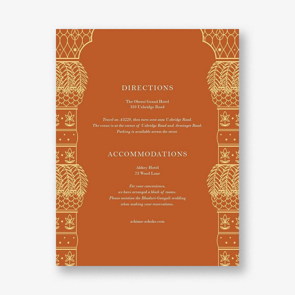 The Vinayaka Information Card features an ornate design on its edges. with your wedding details at its center. Designed by Paperless Post. Printed on Mohawk superfine white 130 lb. card stock that is soft to the touch and matches our superfine white envelopes. Paper is FSC certified and made using wind power.