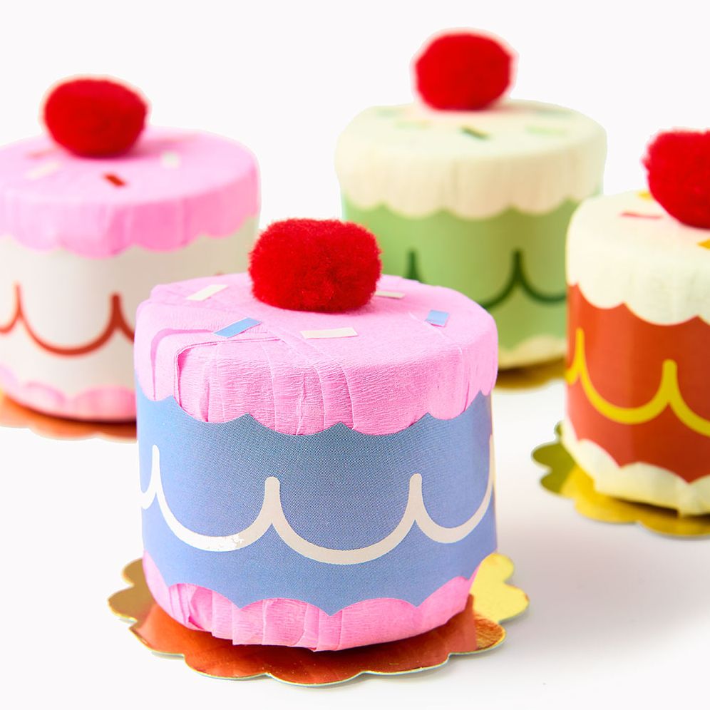 4 cake-shaped surprise balls sure to get everyone in the celebration spirit! PS Designed.