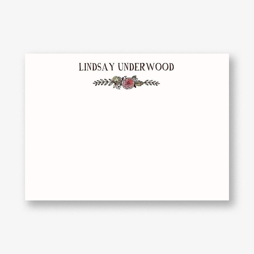 Our pretty watercolor floral design creates the perfect frame for you name in a unique and whimsical font. Printed on superfine white paper. which has a smooth finish and is soft to the touch. 130# cover weight paper with 30% post consumer recycled content.