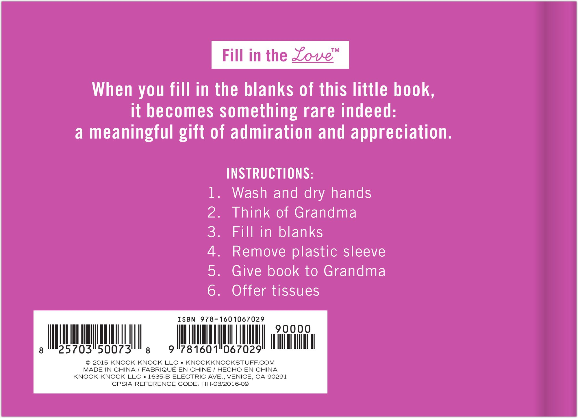 This little book contains fill-in-the-blank lines to describe why your grandma is the greatest. Just complete each line and voil??: you have a uniquely personal gift Grandmother will read again and again. Make it as sweet. serious. or sentimental as you choose!