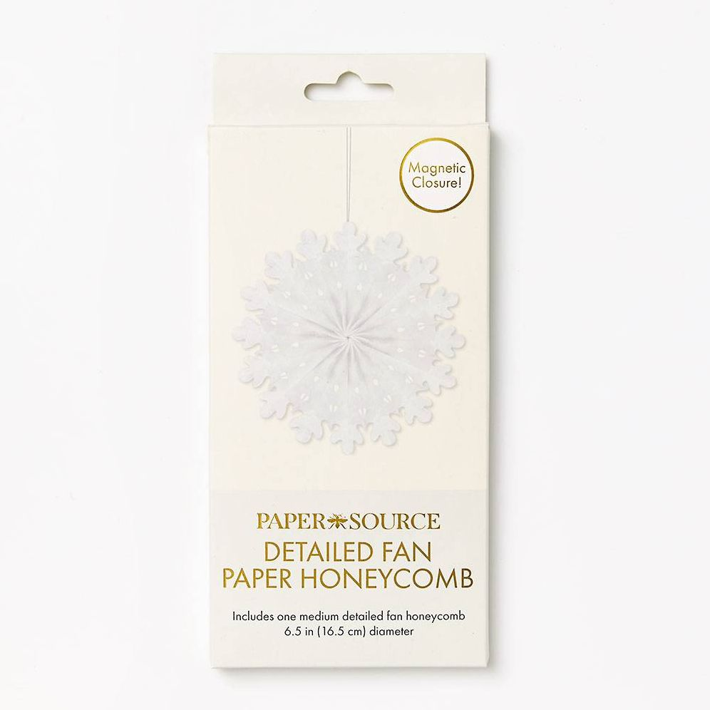 White Detailed Fan Paper Honeycomb Med 6.5 inches