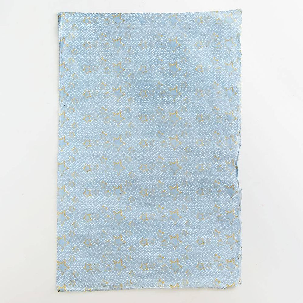 Bring the beauty of the night sky to all of your gifts. Beautifully dotted. this print creates star shapes in gold foil on grey hand made Lokta paper. The renewable Lokta plant’s long fibers are remarkably strong. giving Lokta paper its durability. supple feel. and beautiful aesthetic. These qualities make this lovely fine paper wonderfully suitable for bookbinding. gift wrapping. or card making. And because the Lokta plant is renewable. these handmade papers are truly a green choice.