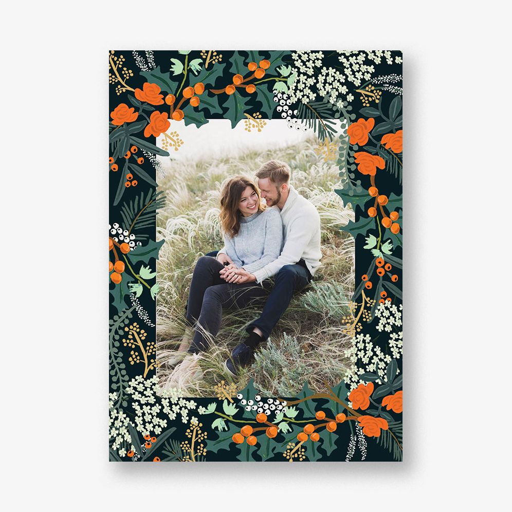 Whimsical florals and greenery from Rifle Paper Co. for Paperless Post make the sweetest holiday card. Printed on Mohawk ultra white. 120 lb. card stock that is soft to the touch and matches our superfine white envelopes. Paper is FSC certified and made using wind power.