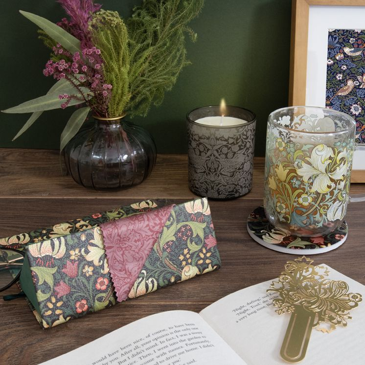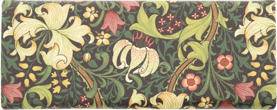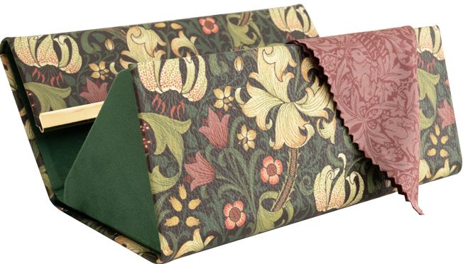 Secure your glasses in style with our triangular foldable case showcasing a design adapted from Golden Lily wallpaper. and accented with a gold metal bar. Folds flat for convenience.