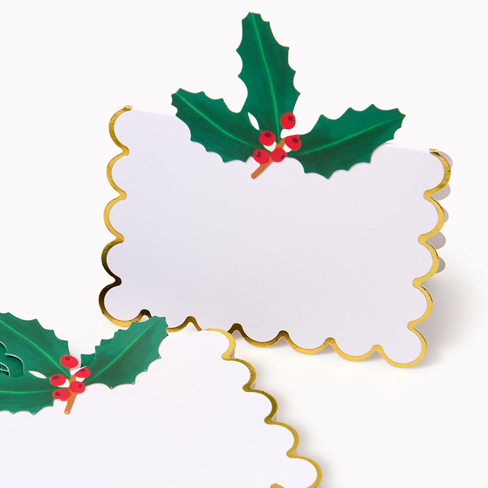 Make your Holiday hosting stand out and elevate your tablescape with these beautiful botanical place cards! Each place card features a festive die cut sprig of holly and berries.