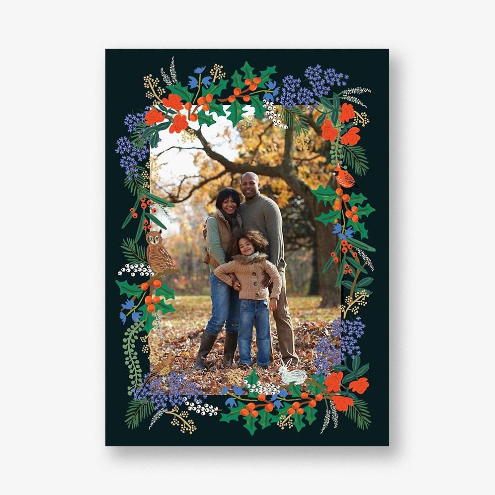 Holiday greenery and florals encircle your favorite photo on the front of this beautiful holiday card. designed by Rifle Paper Co. for Paperless Post.