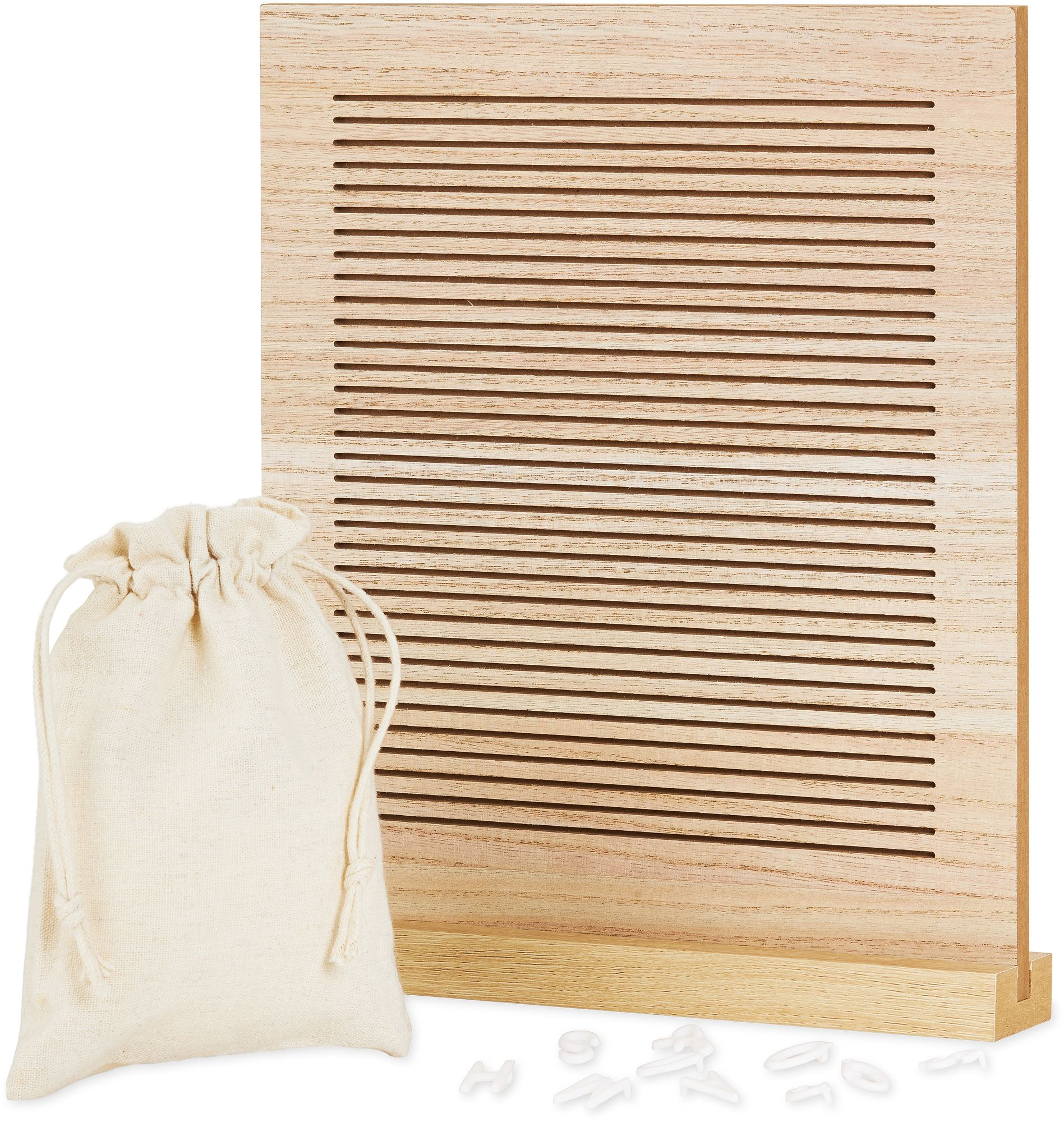Add a personal touch to your space with this modern wooden letter board. Whether it’s a motivational quote. a daily reminder. or a fun message. this letter board is the perfect way to express yourself. Includes 145 white letters/numbers/symbols plus a cotton bag to store the characters in when not in use.