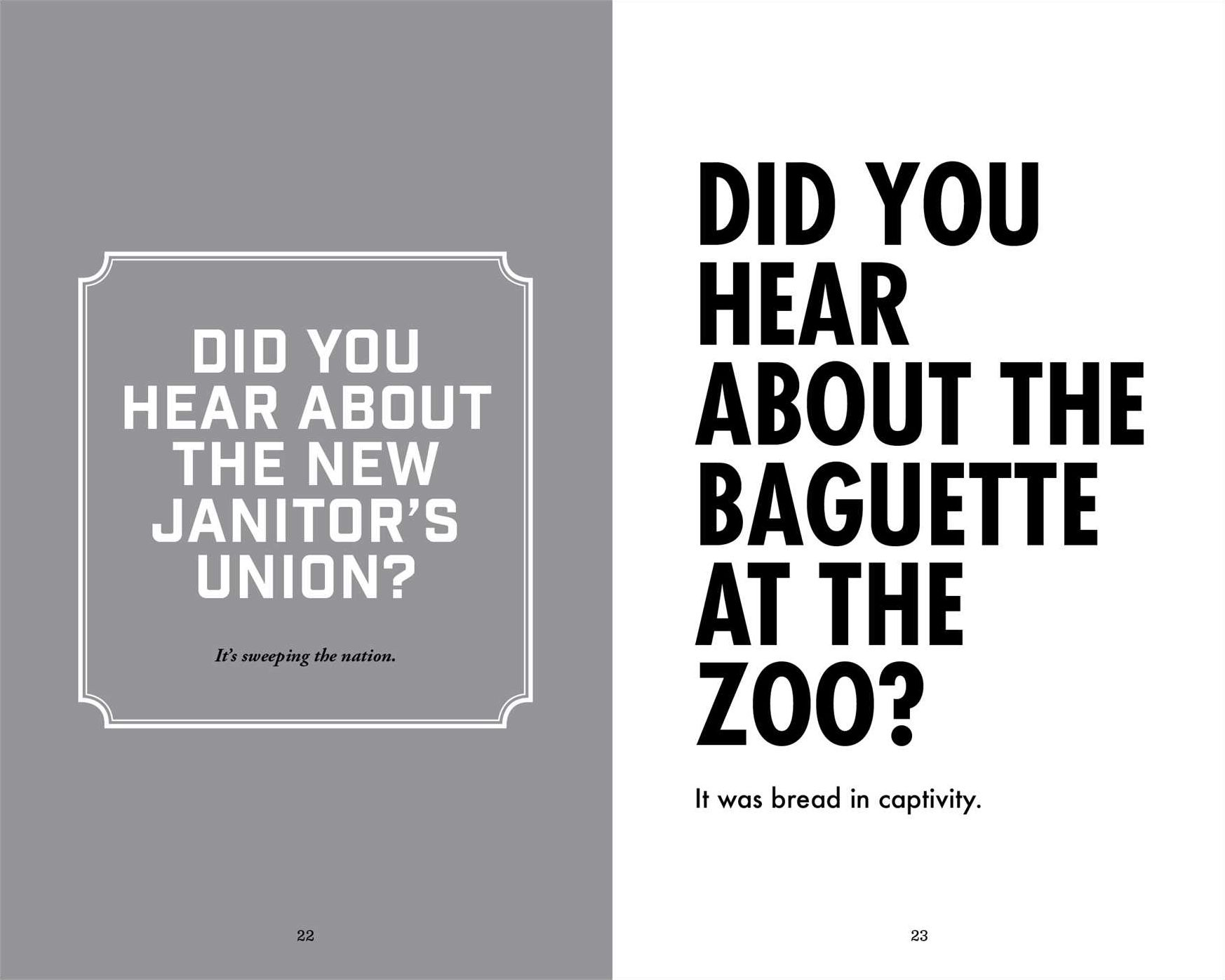 This is just one example of the 200 hilariously hokey knee-slappers and puns in World’s Greatest Dad Jokes. Tired of the same humdrum ill-fitting pants jokes. or jabs about turkeys being flightless birds? This perfect Father’s Day. Christmas or anytime gift will keep the dads in your life on the pulse of family-friendly corny humor that is all new and exclusive to this book. With this comically exhaustive resource on hand. everyone will be laughing with dads. not at them!