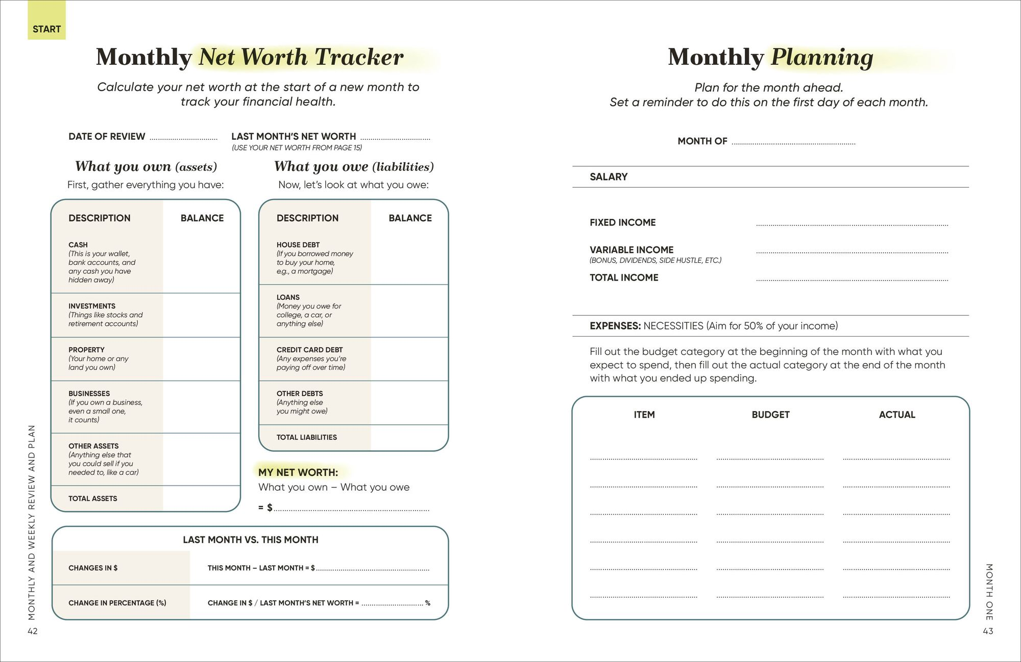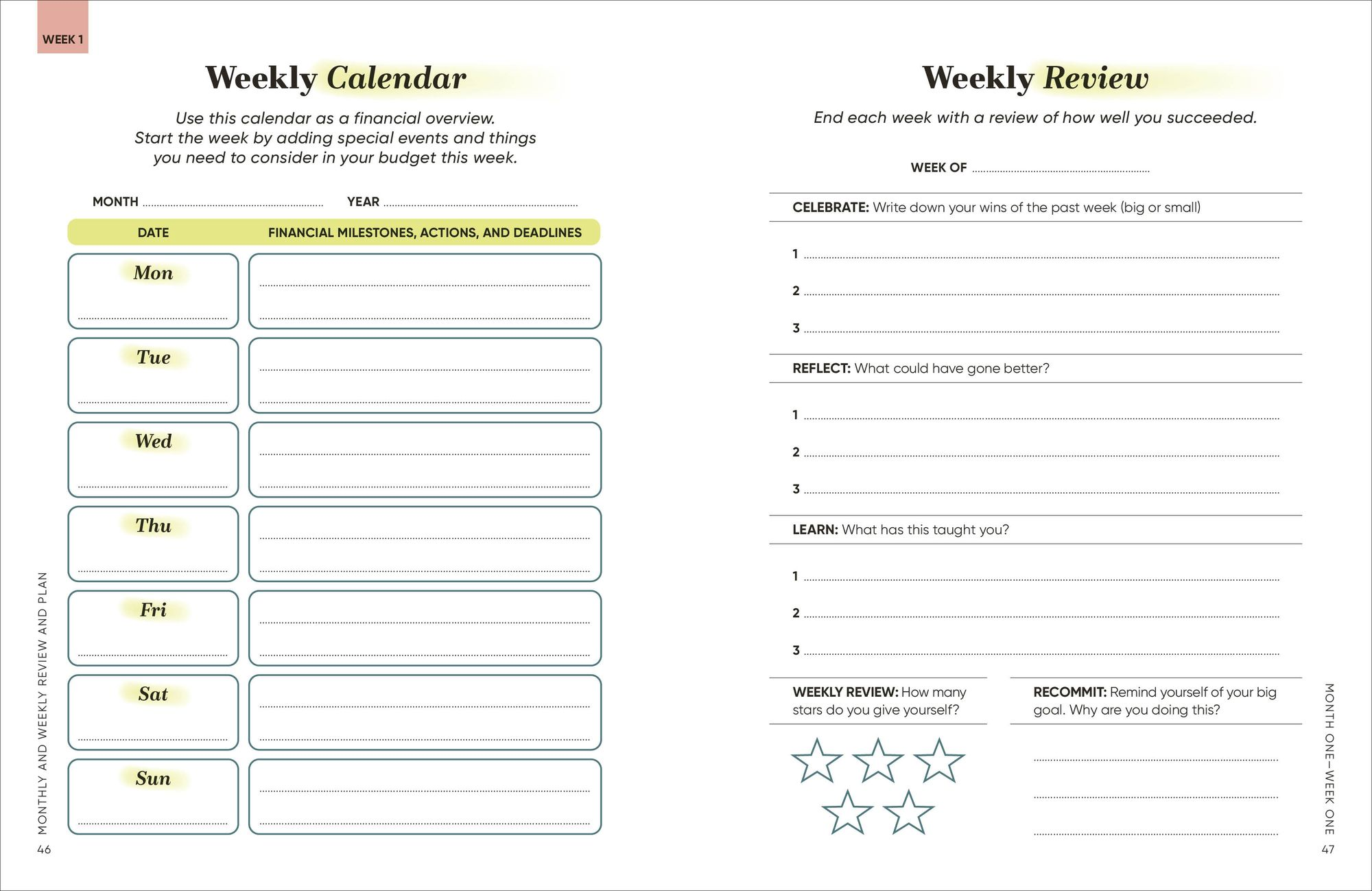 - A monthly to-do list to help you reach your targets